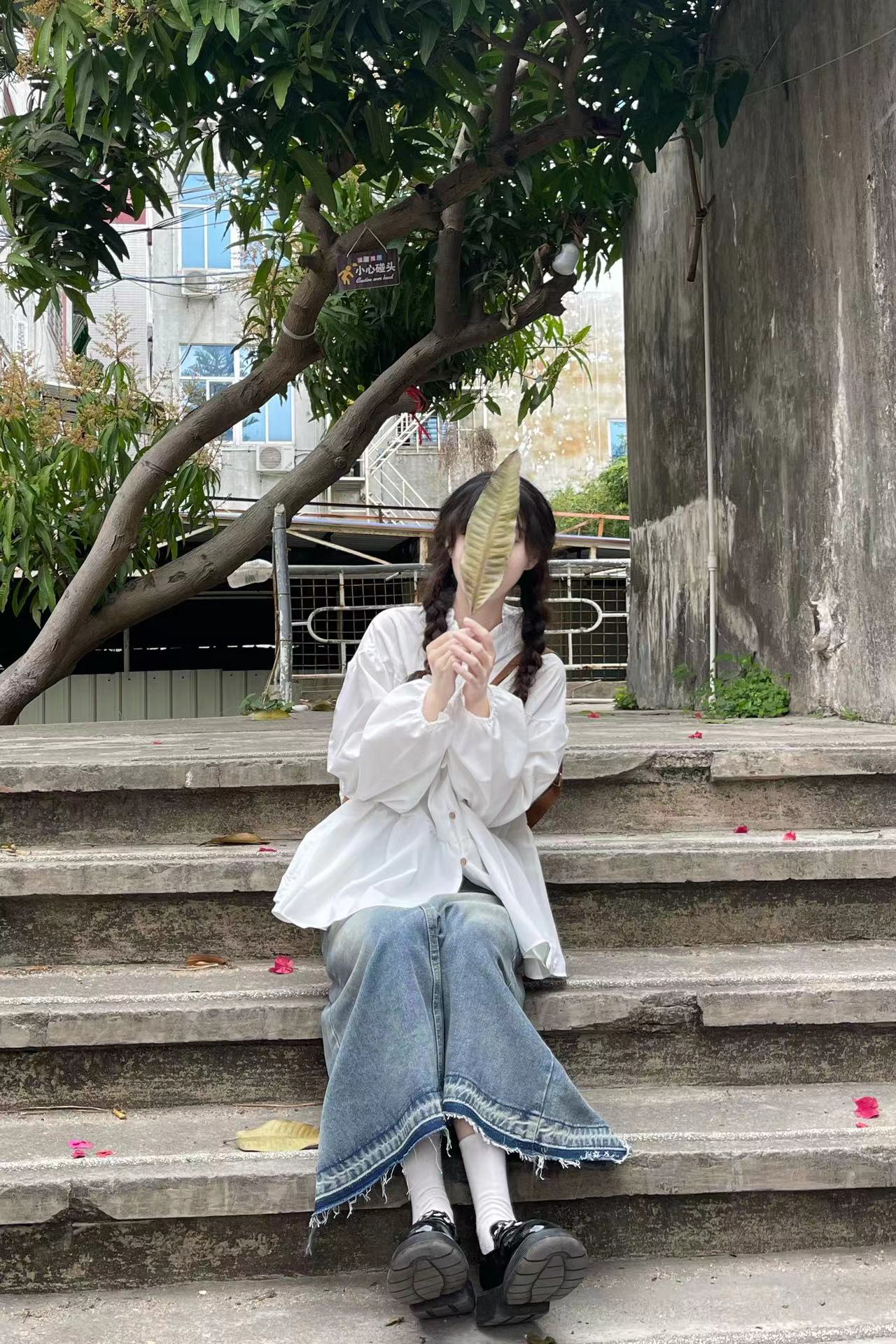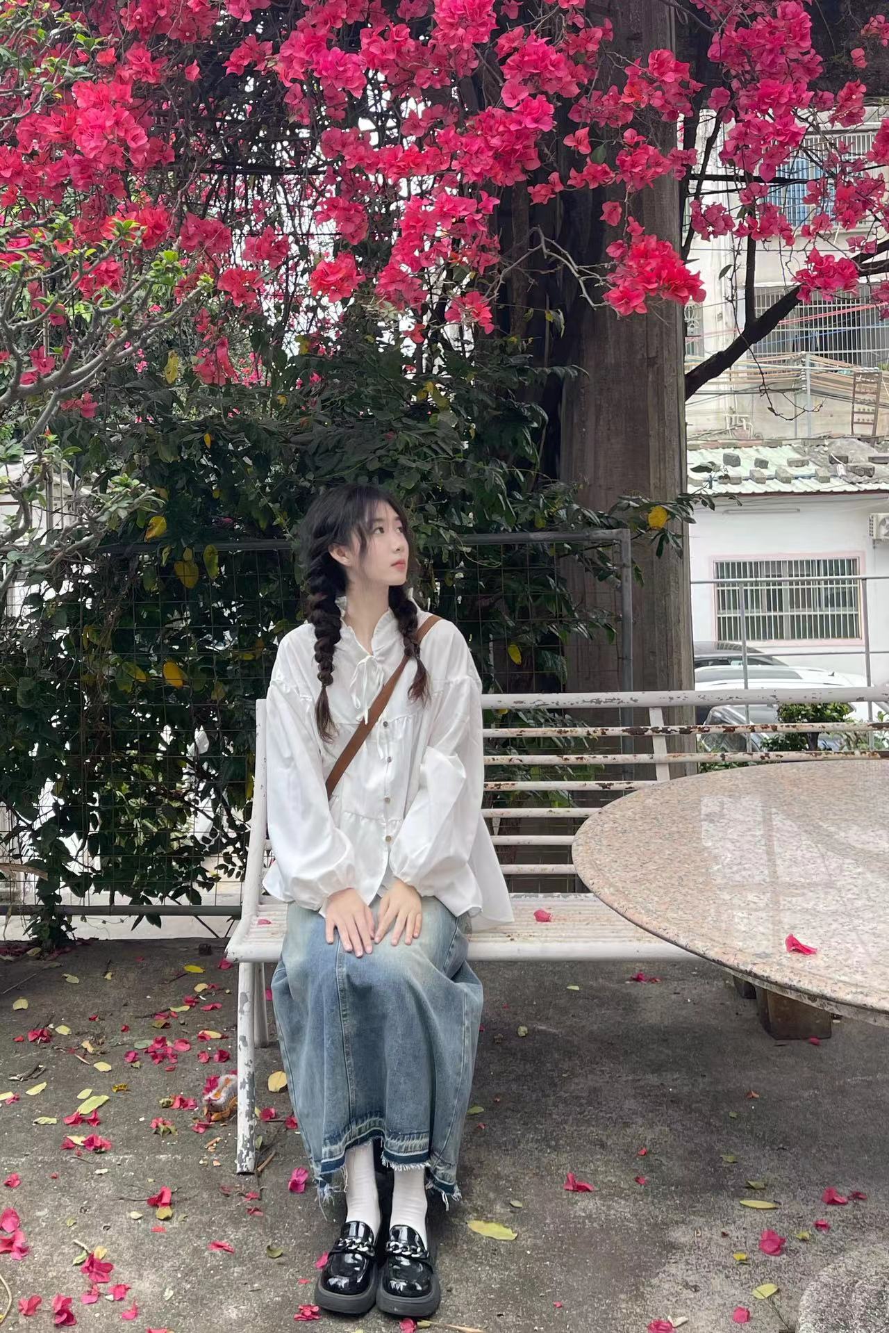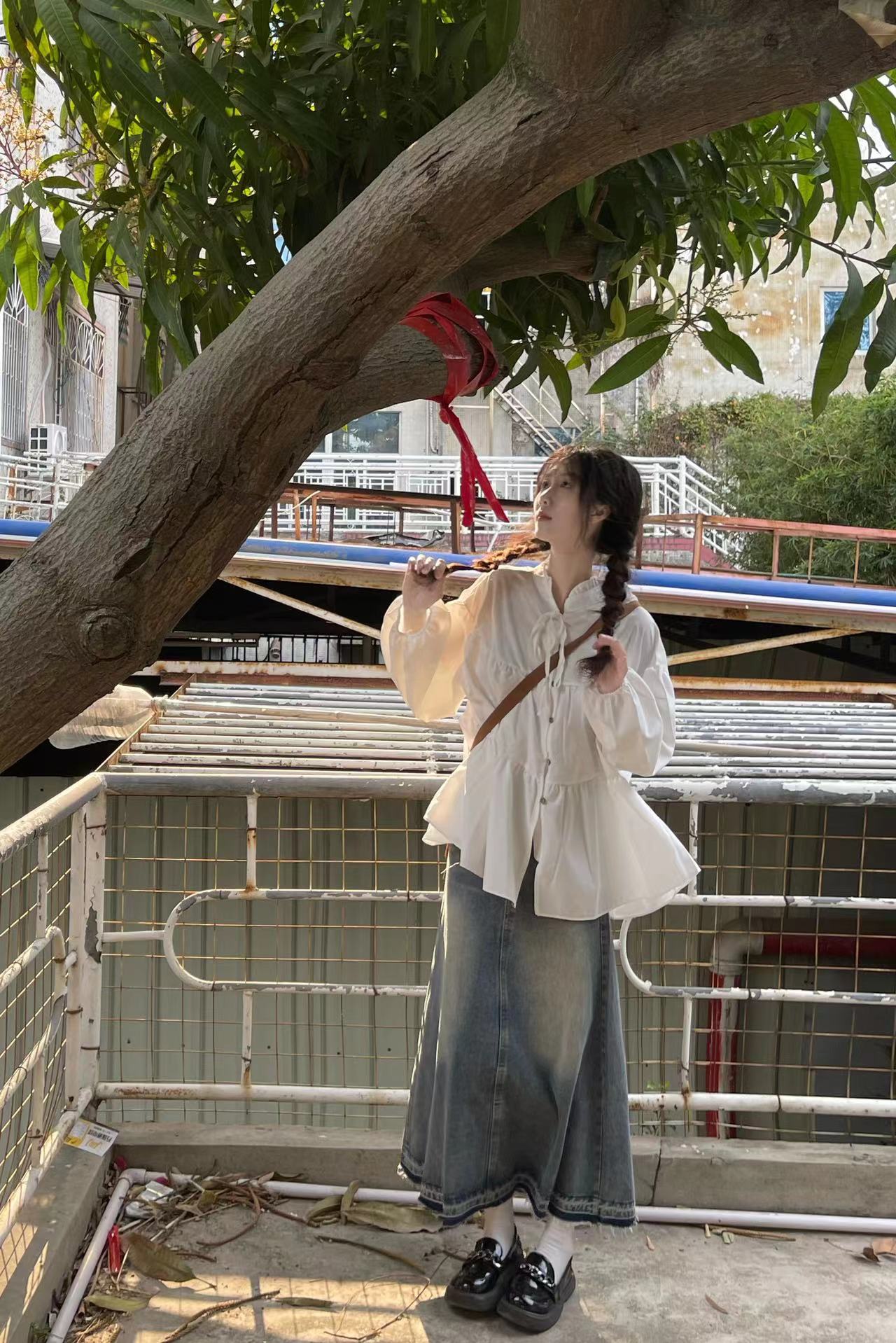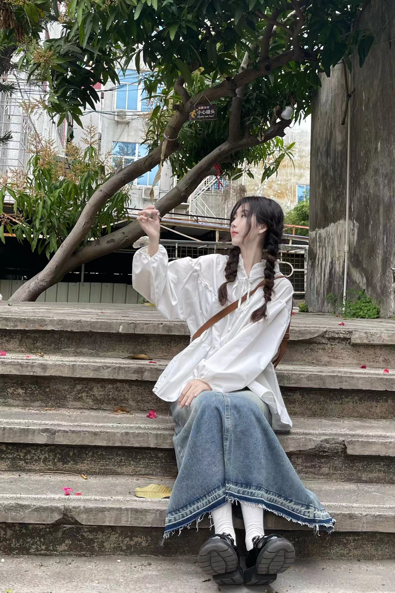 日系溫柔白色系帶鈕釦襯衫小眾設計感森系減齡文藝百搭燈籠袖上衣