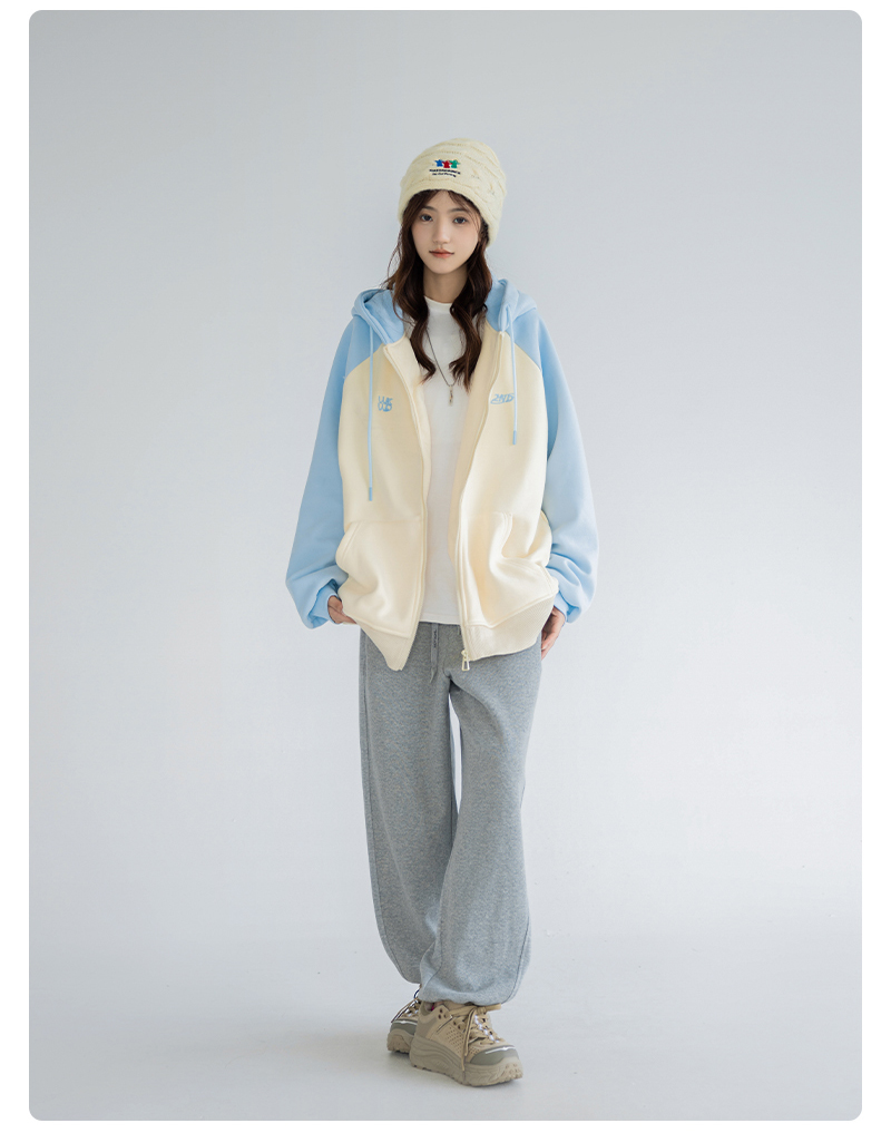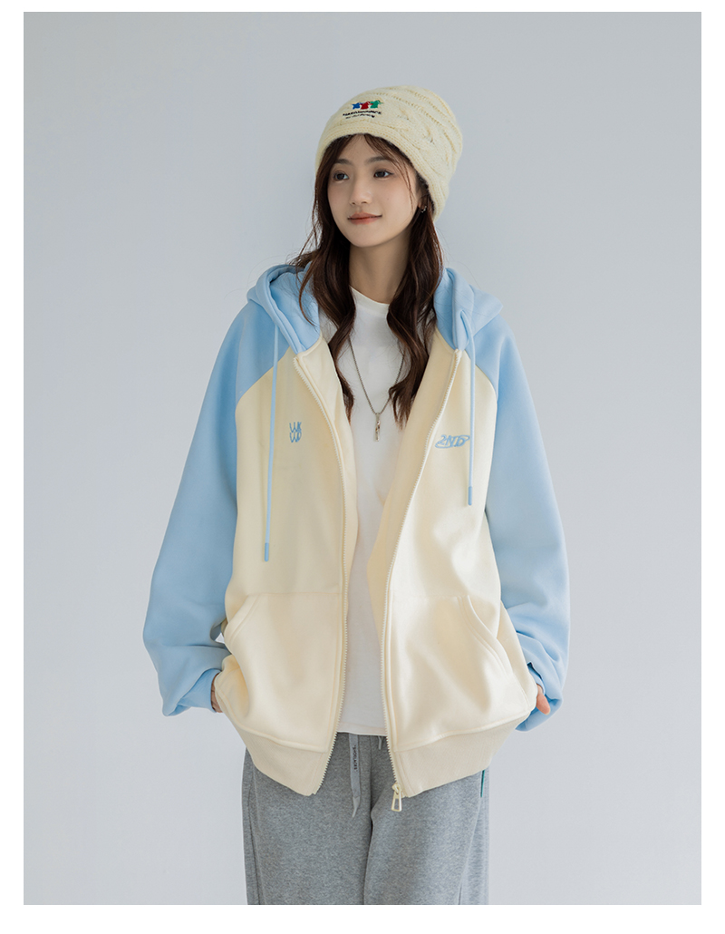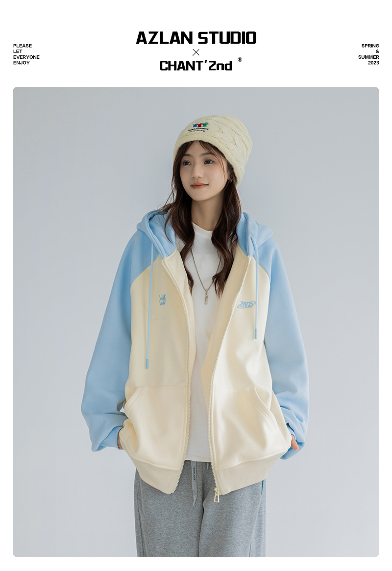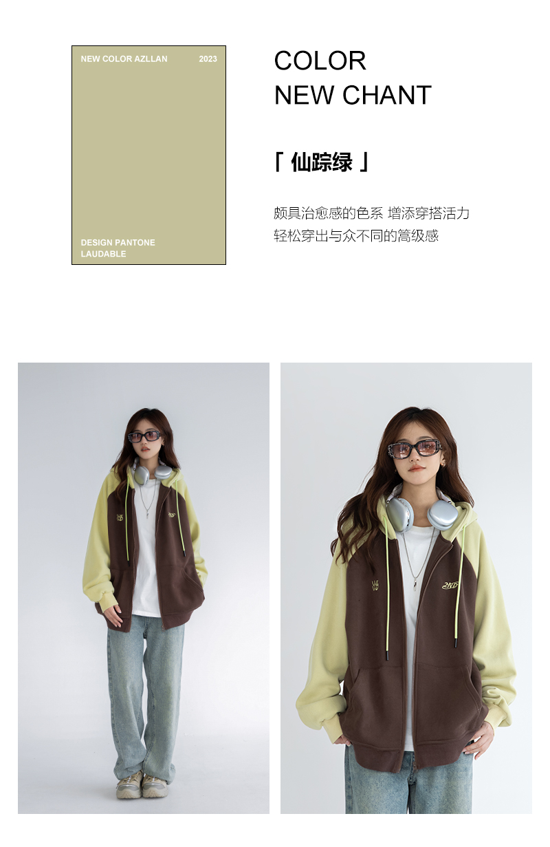 AzLan美式復古插肩袖衛衣開衫女春秋2023新款高級感連帽寬鬆外套