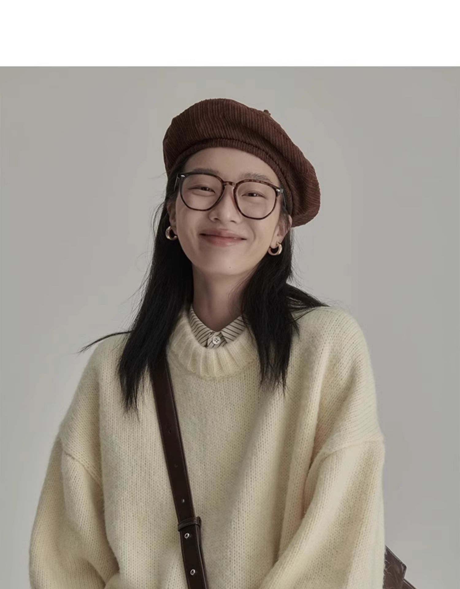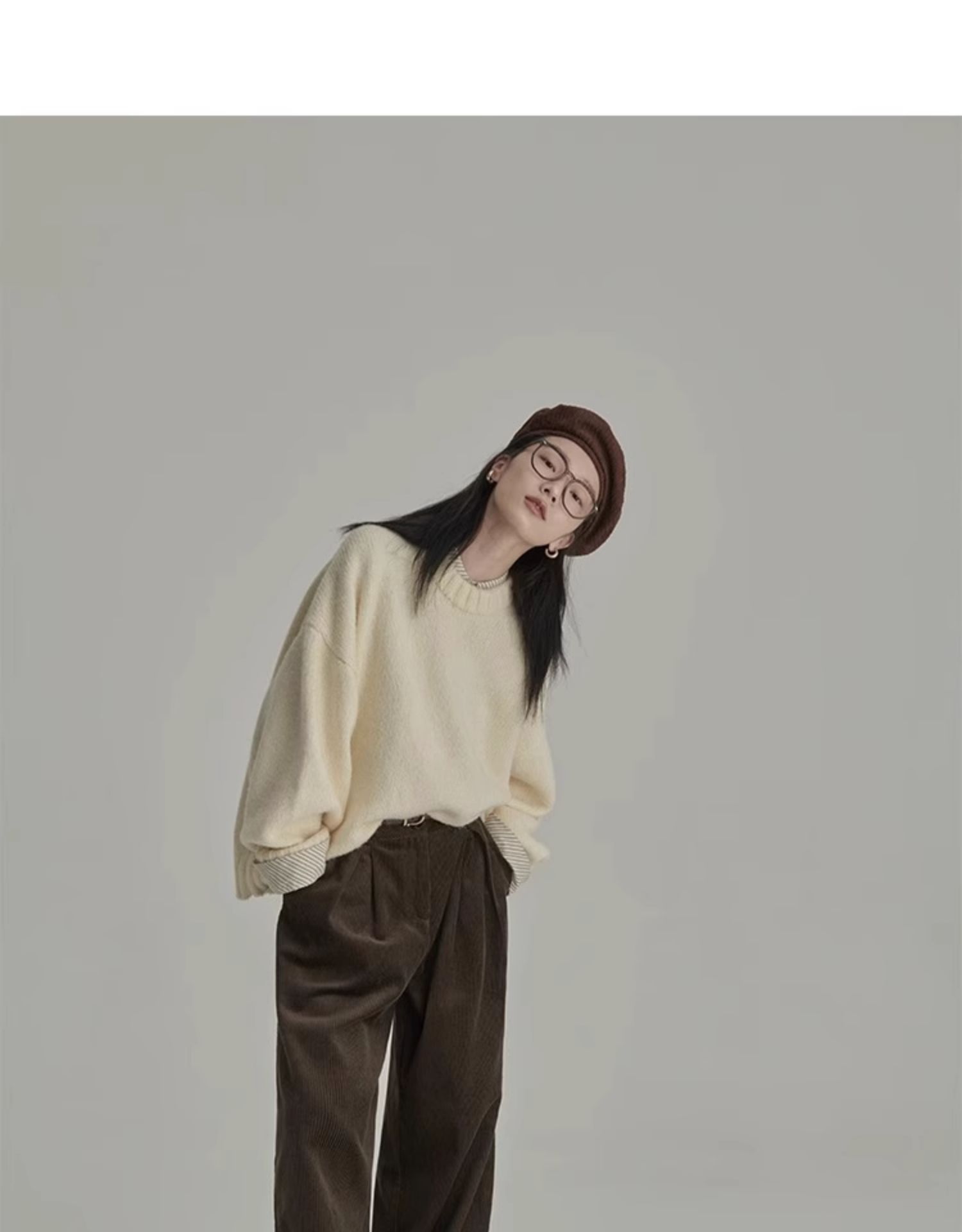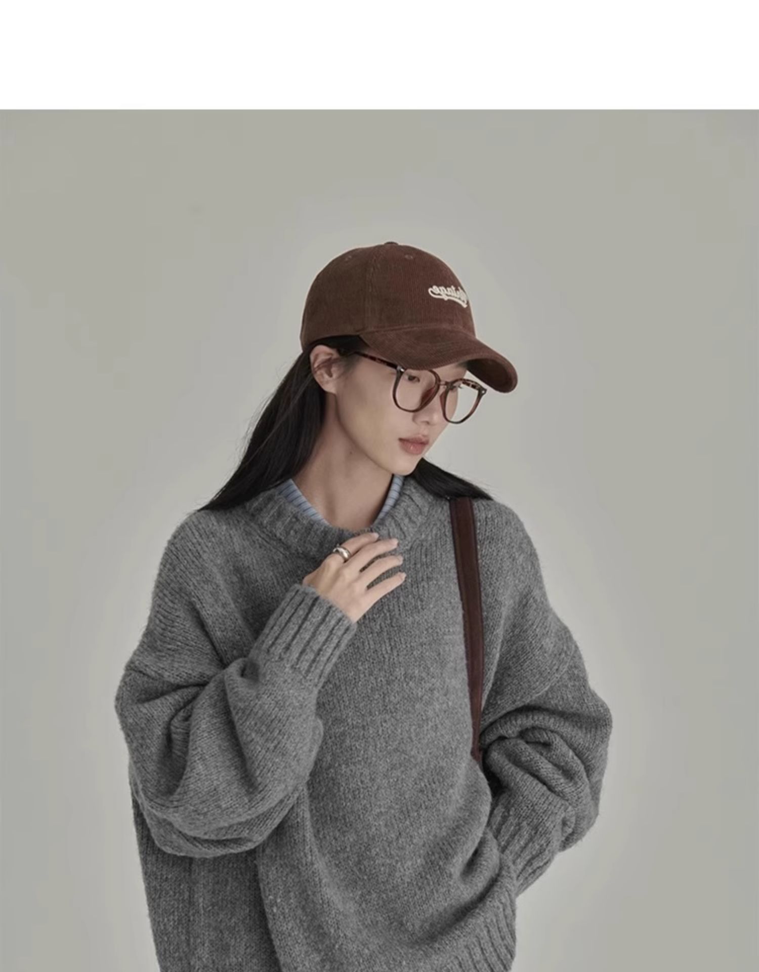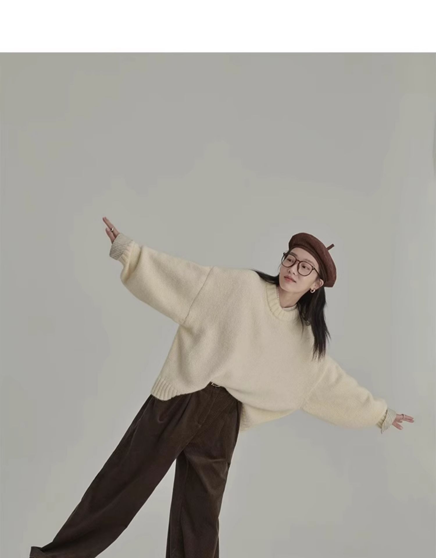 秋冬慵懶風復古圓領套頭寬鬆馬海毛純色外穿內搭打底加厚毛衣女潮