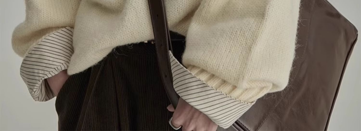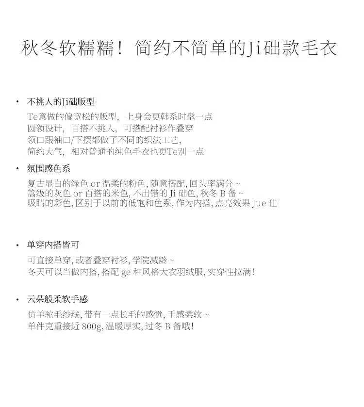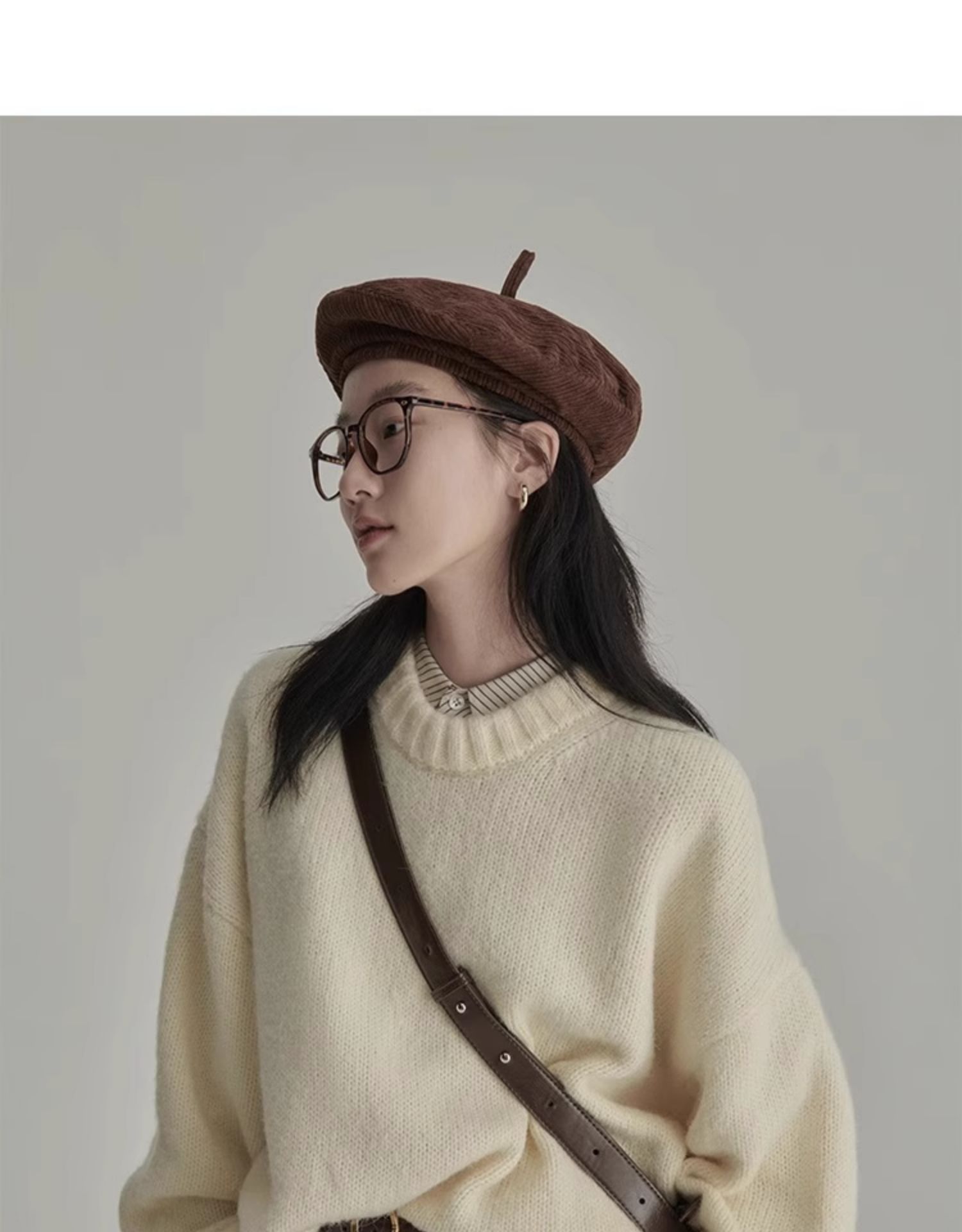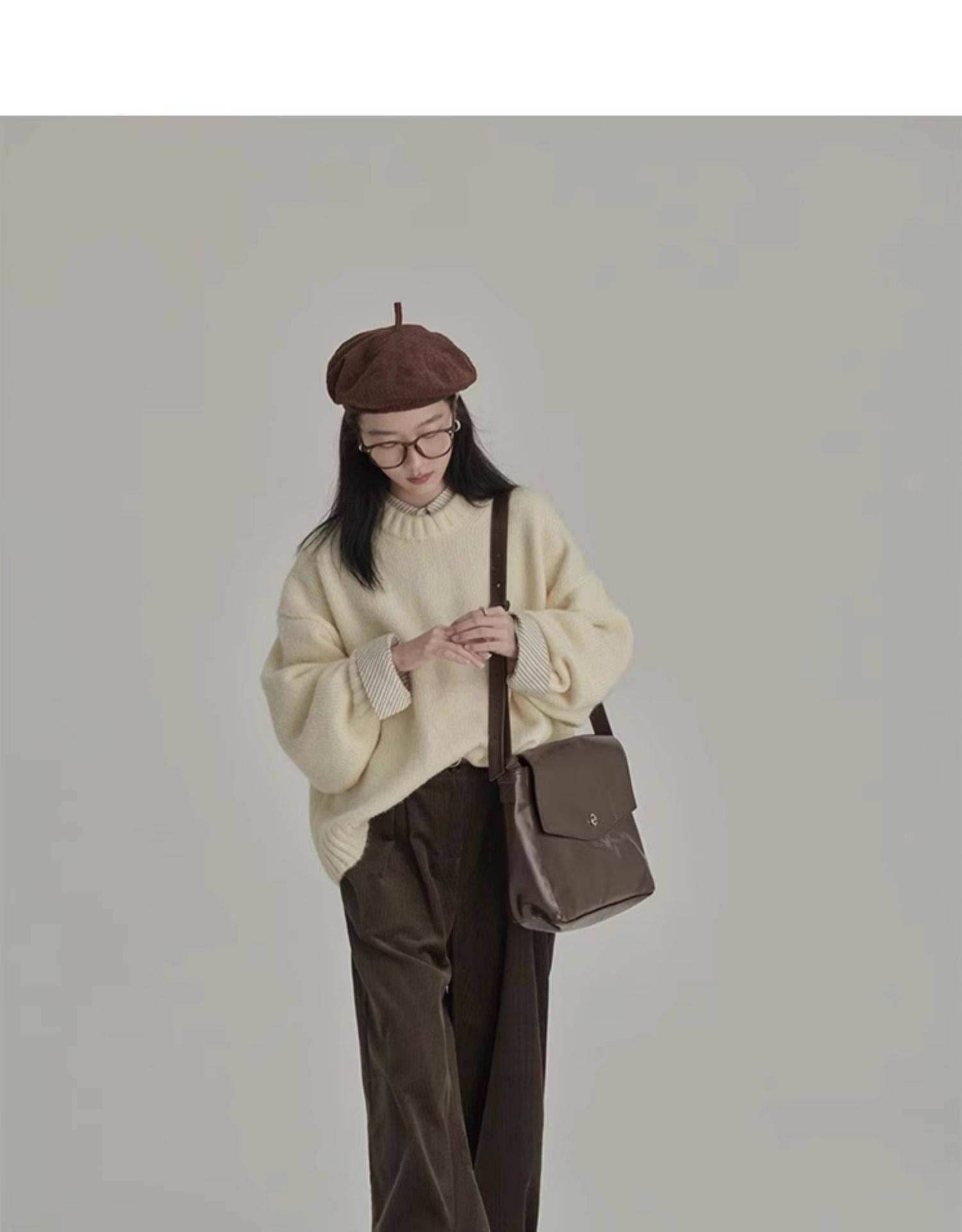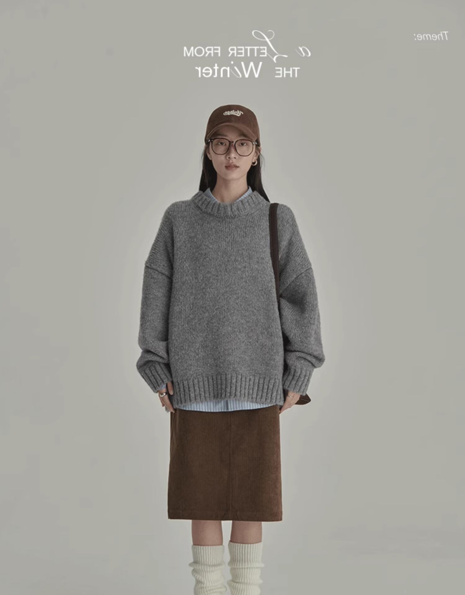秋冬慵懶風復古圓領套頭寬鬆馬海毛純色外穿內搭打底加厚毛衣女潮