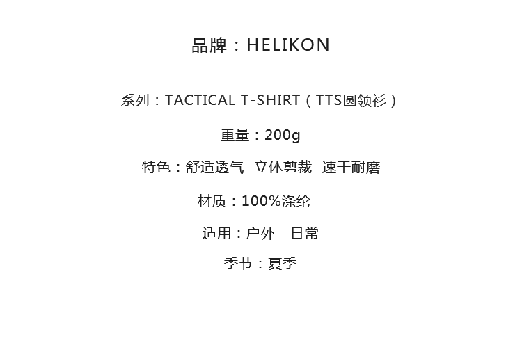 Helikon赫利肯 軍迷短袖t恤 男特種兵夏季戰術圓領戶外速乾T恤