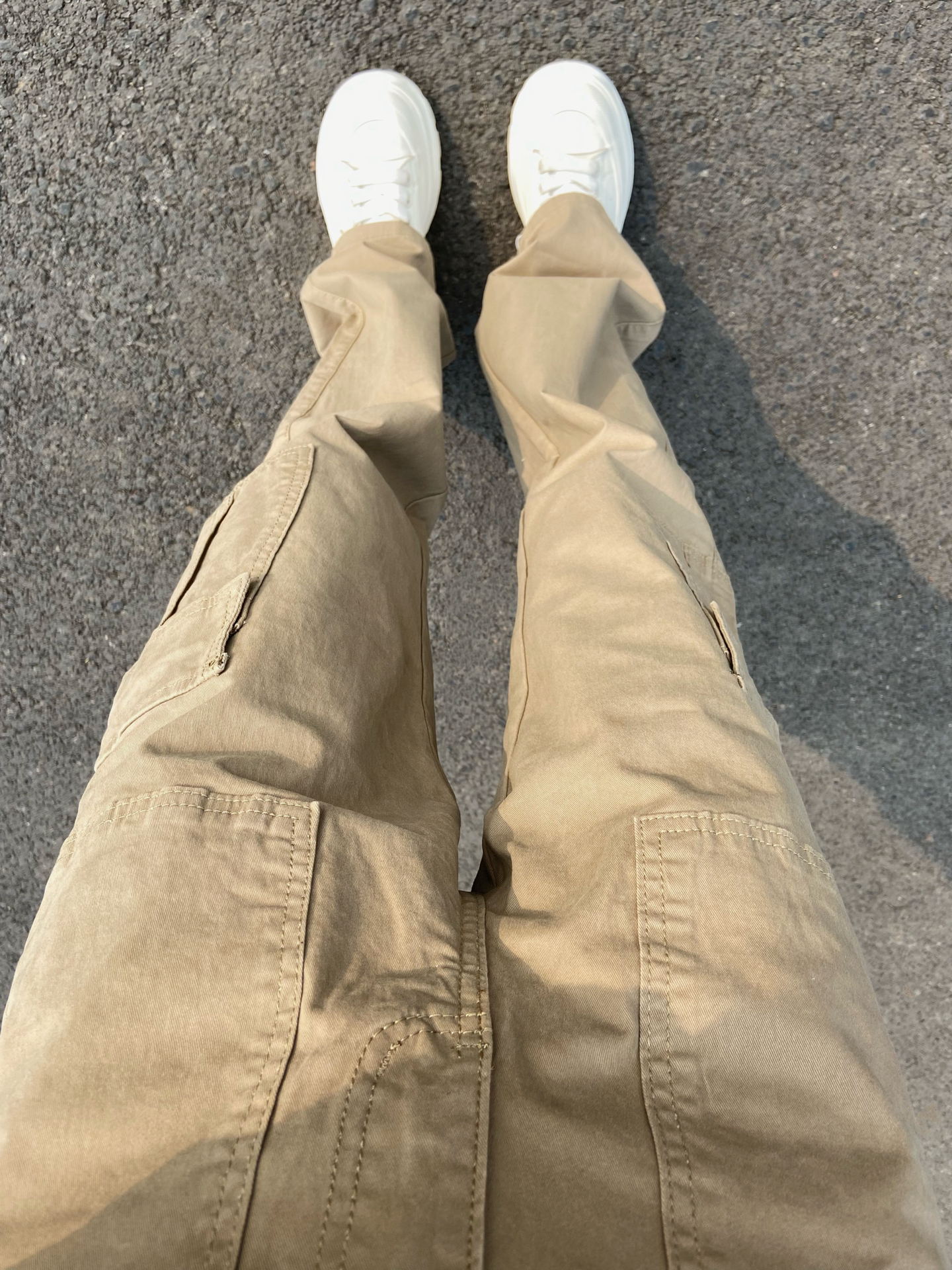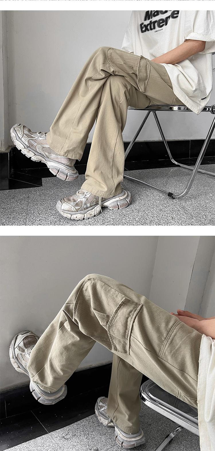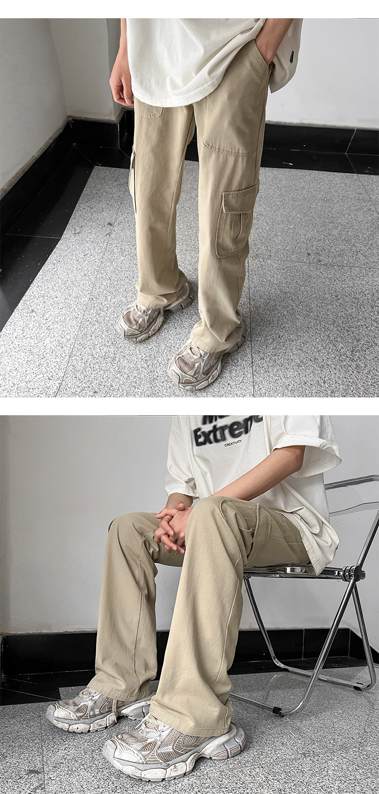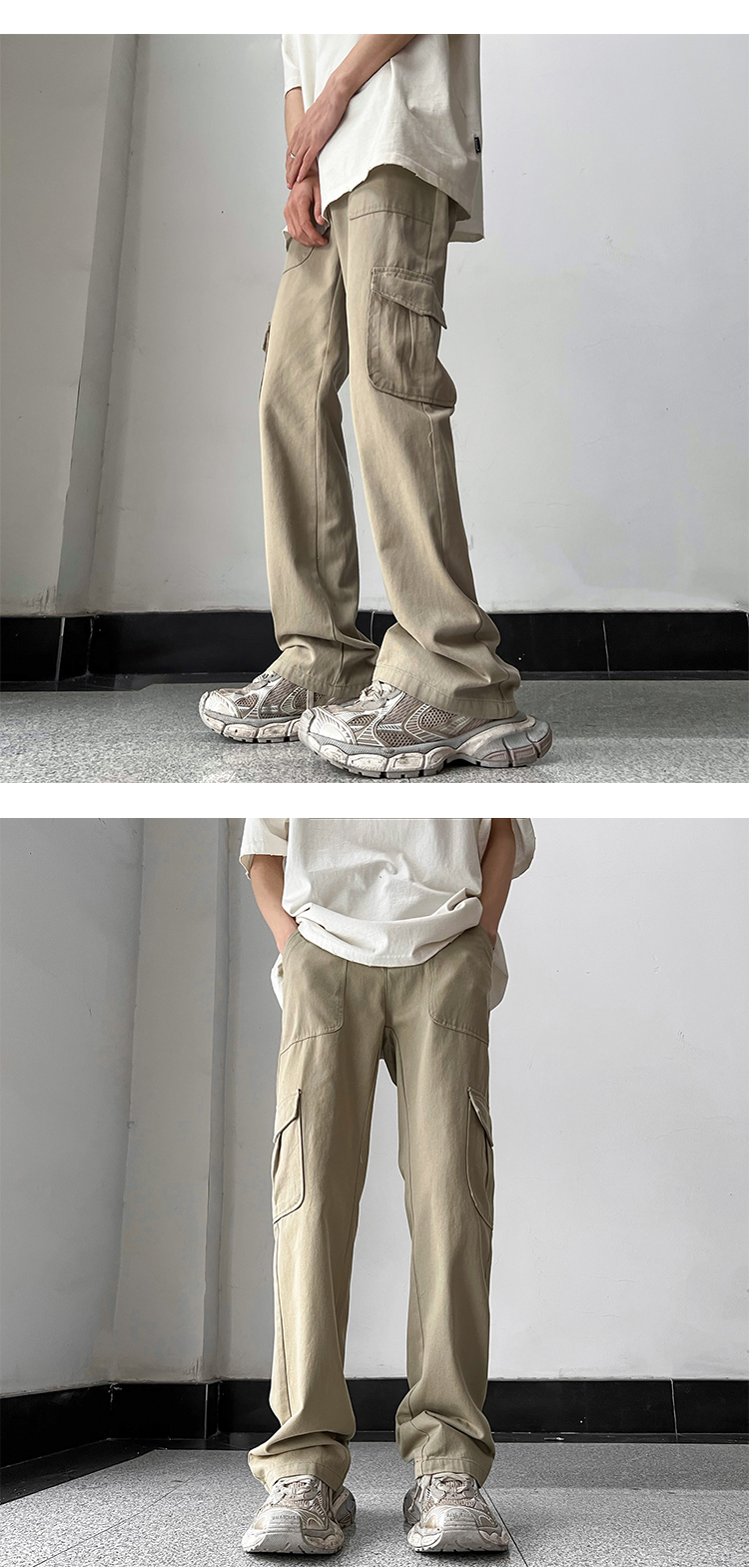 復古cleanfit伐木工裝褲潮牌直筒卡其色褲子男美式高街vibe休閒褲