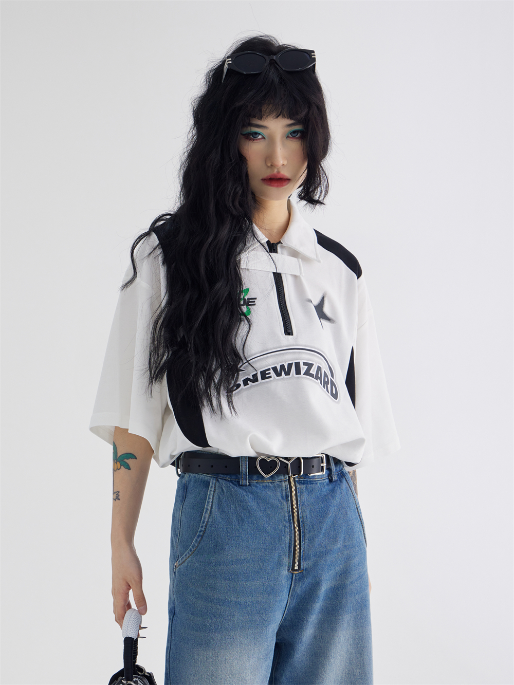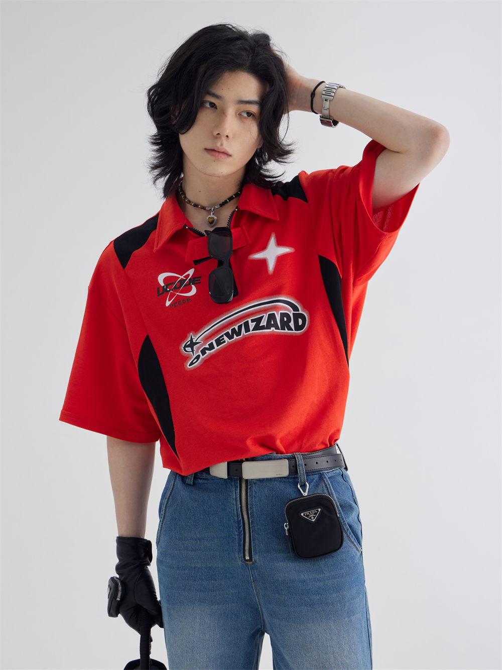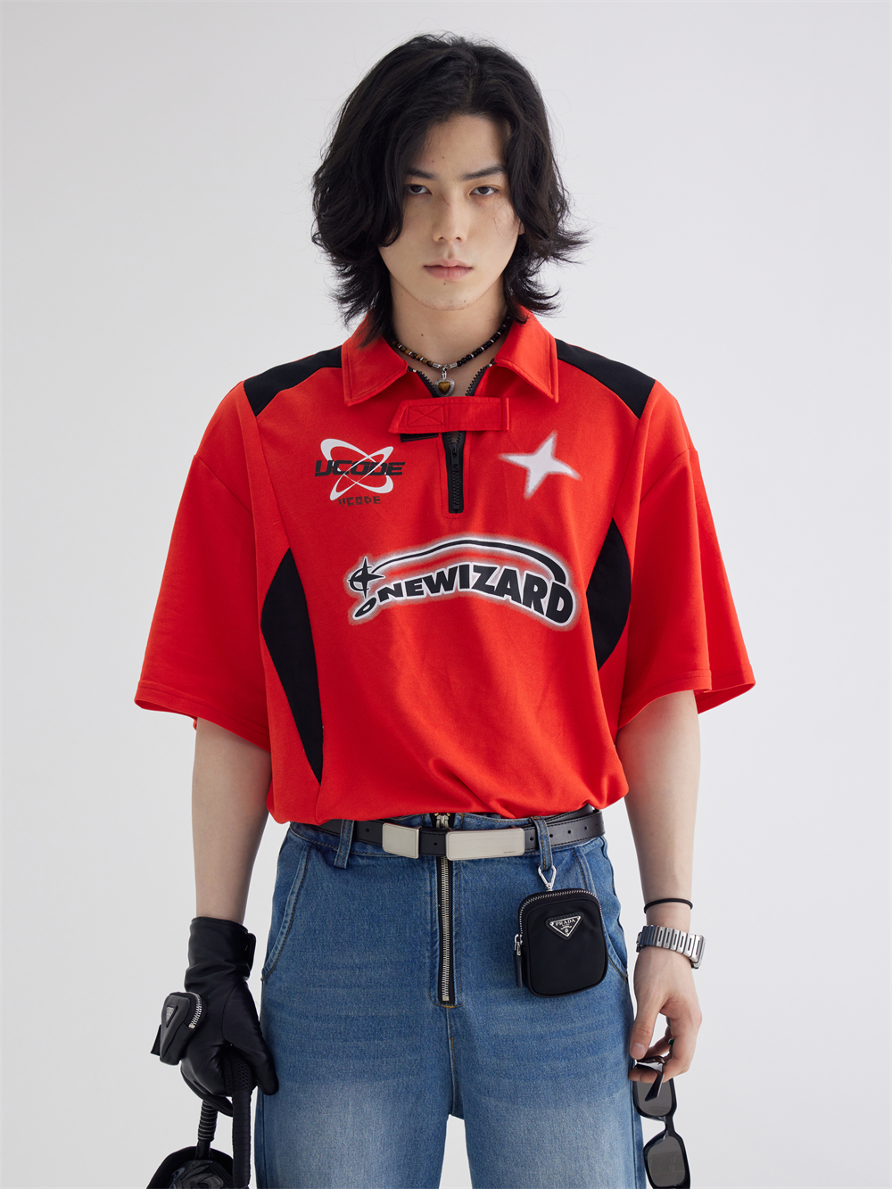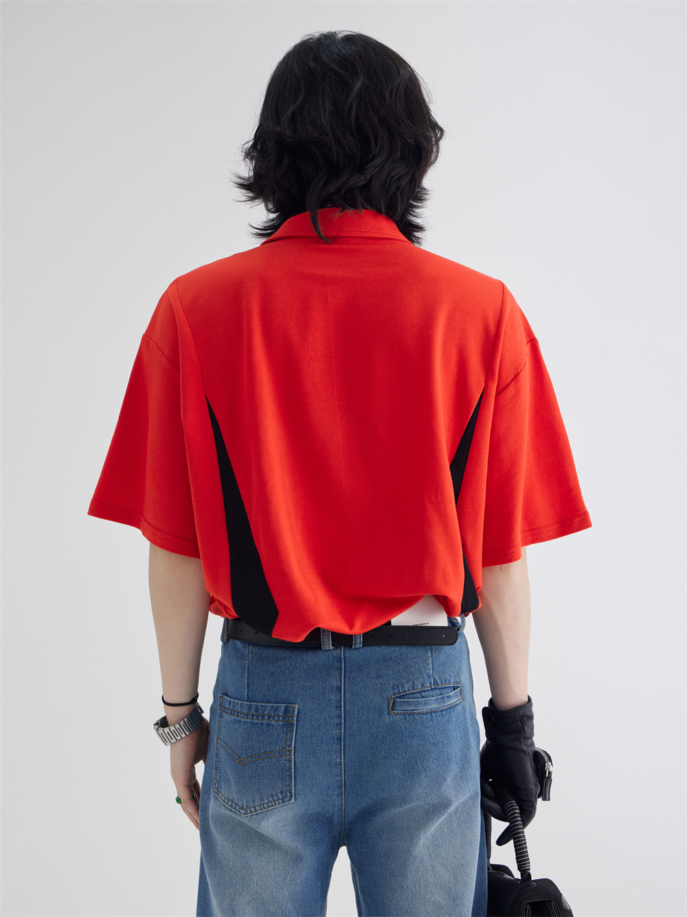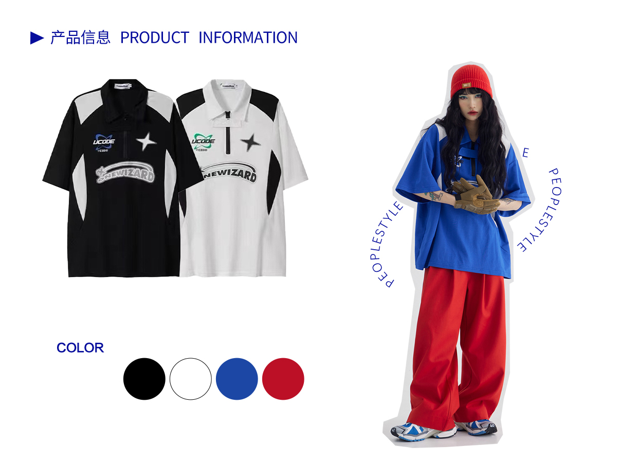 peoplestyle 新款撞色機車風翻領POLO衫情侶款高街潮流休閒上衣潮