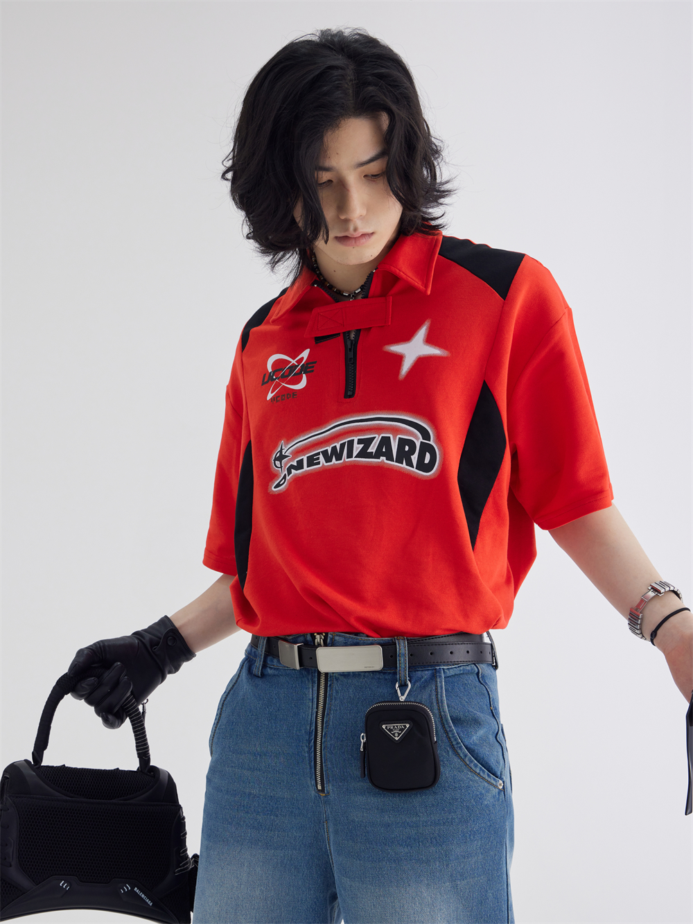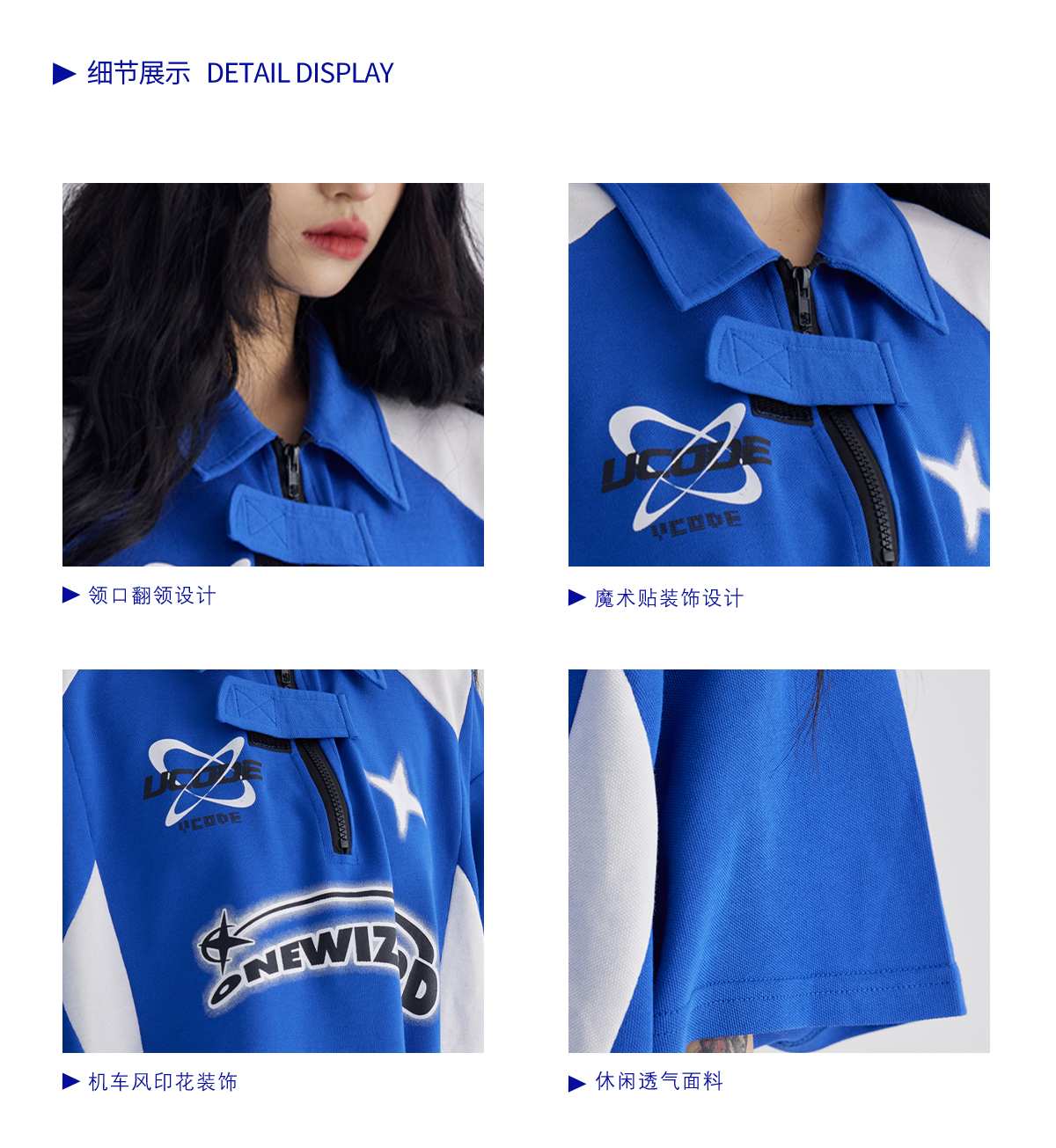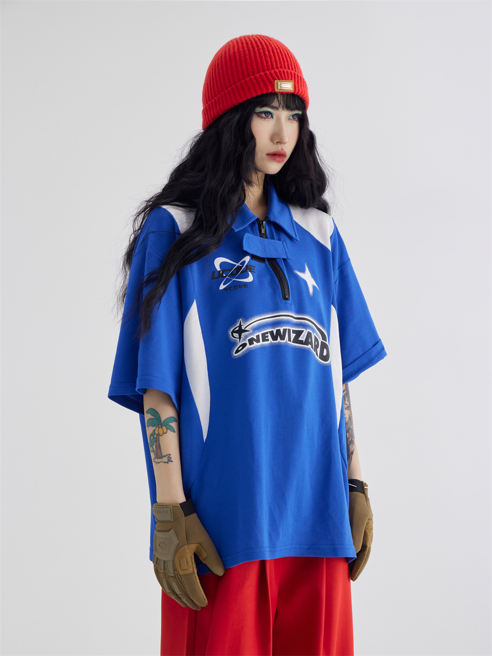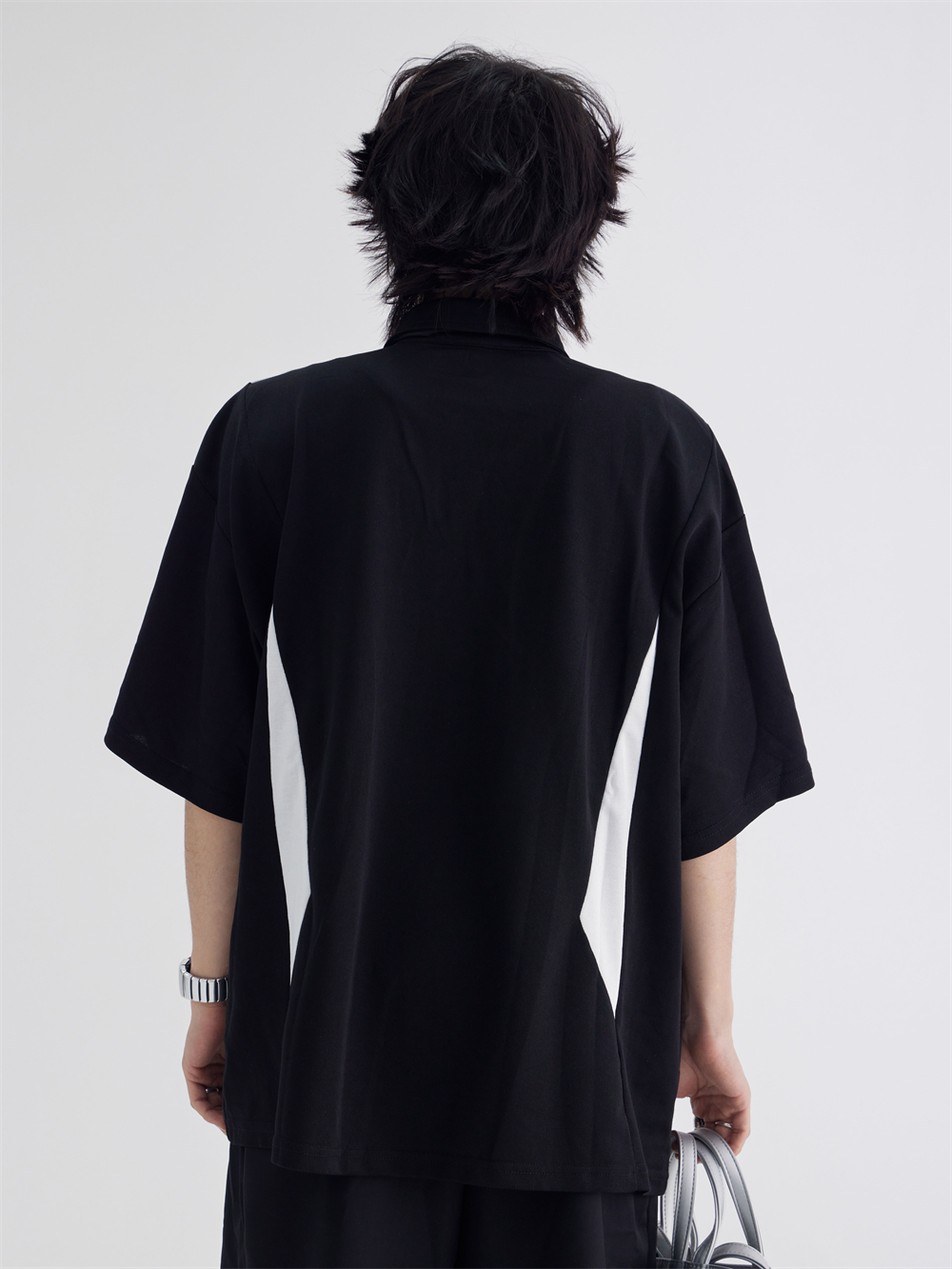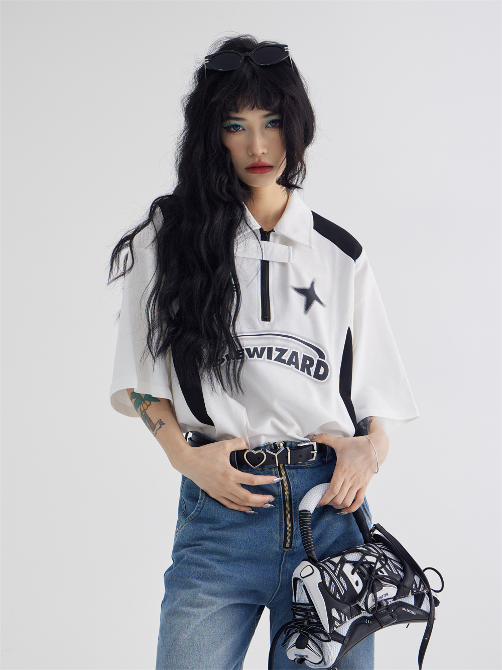 peoplestyle 新款撞色機車風翻領POLO衫情侶款高街潮流休閒上衣潮