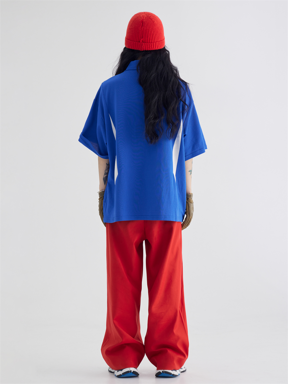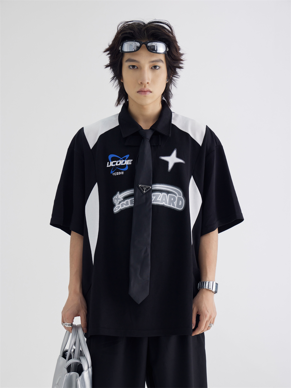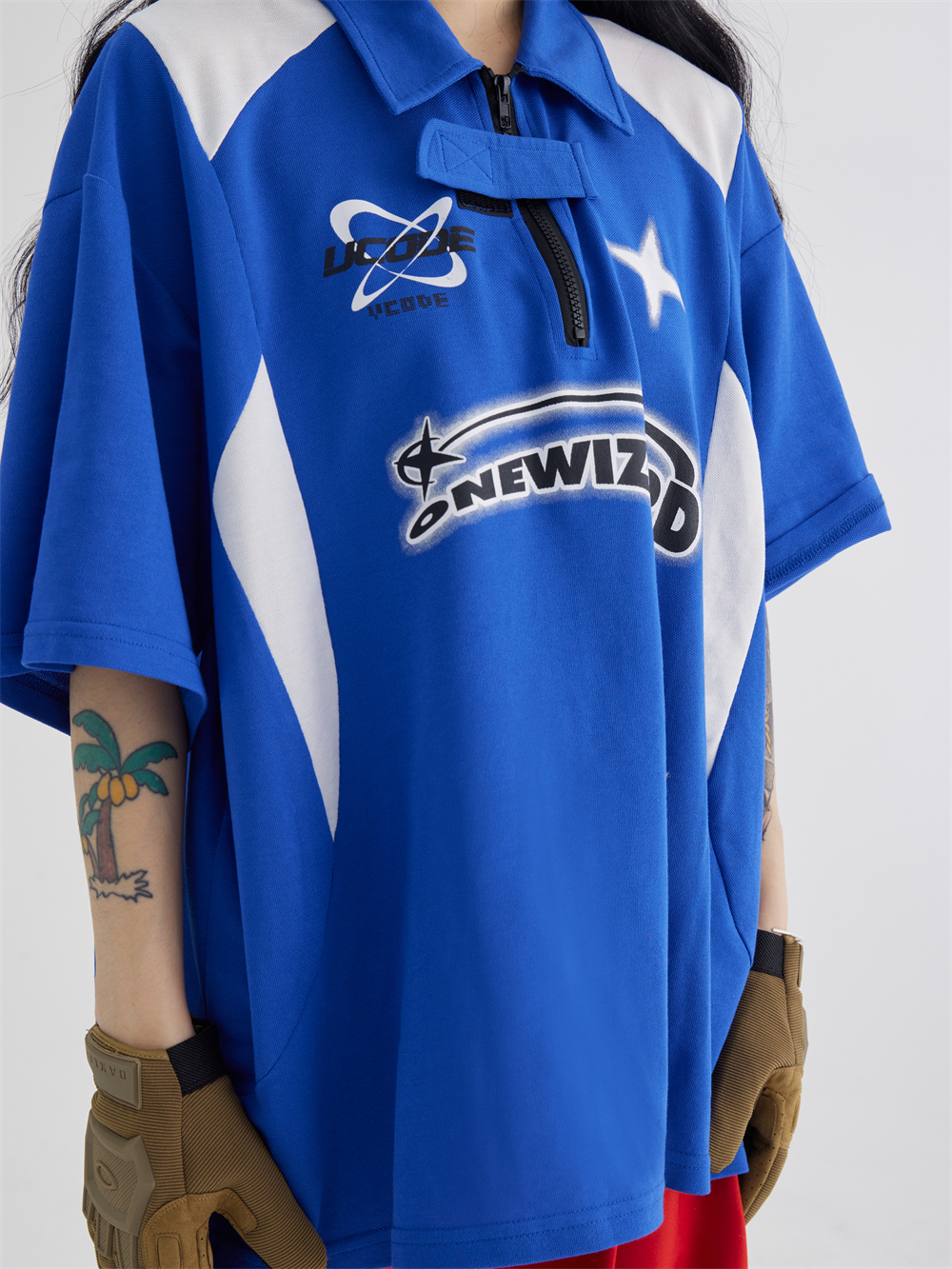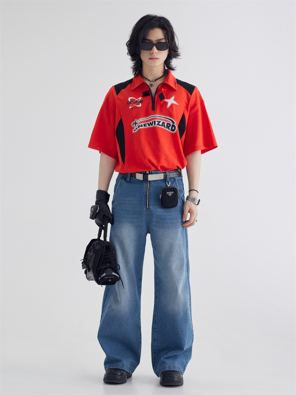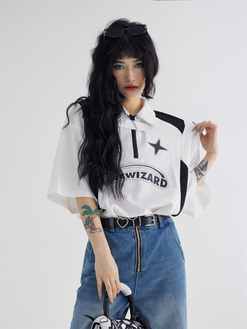 peoplestyle 新款撞色機車風翻領POLO衫情侶款高街潮流休閒上衣潮