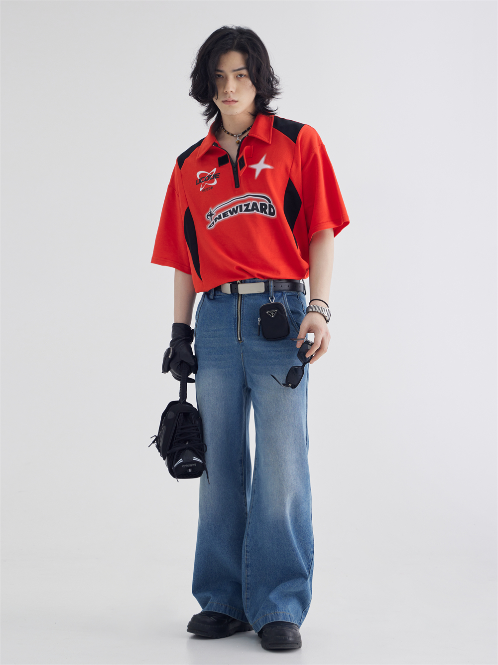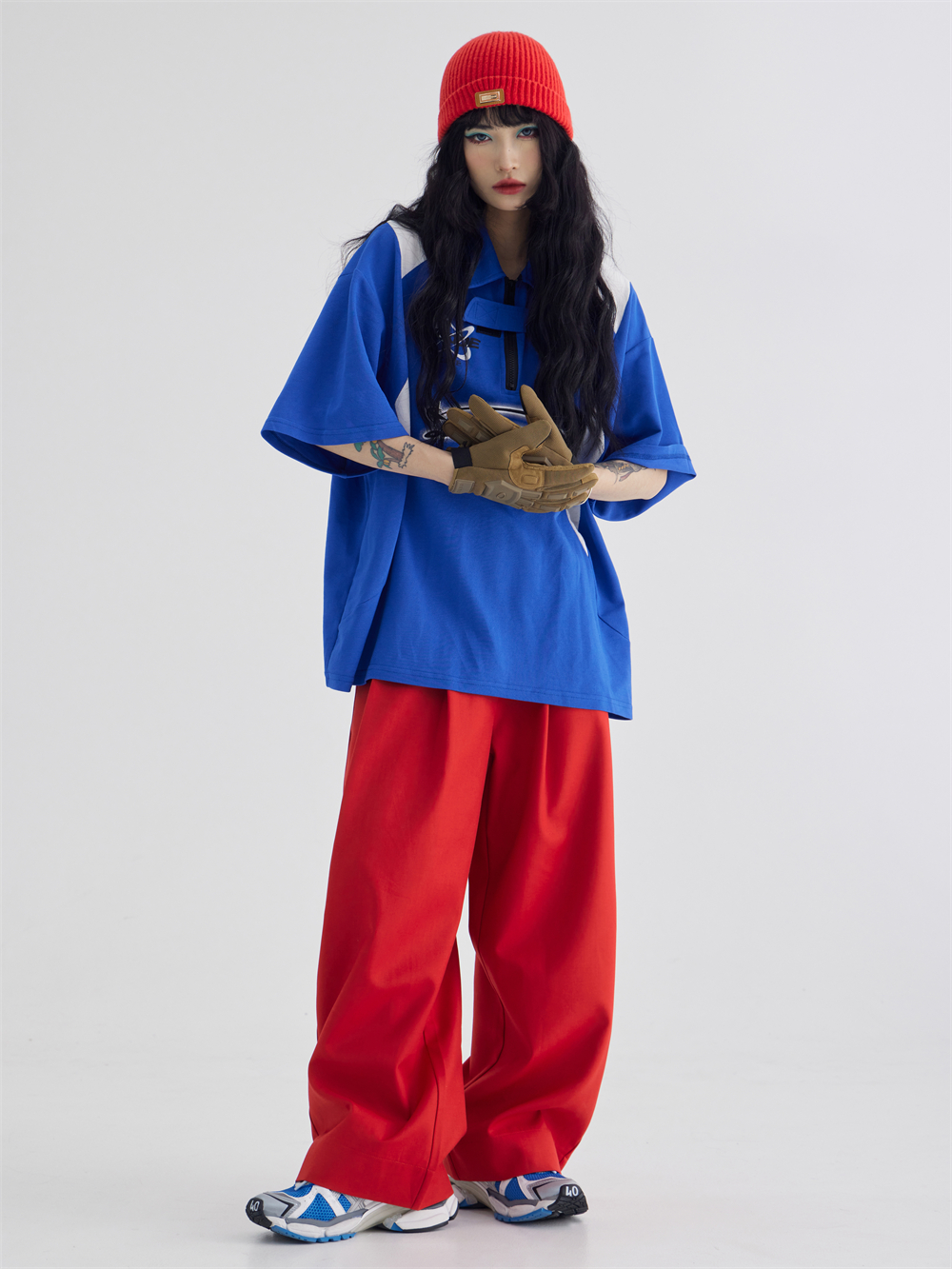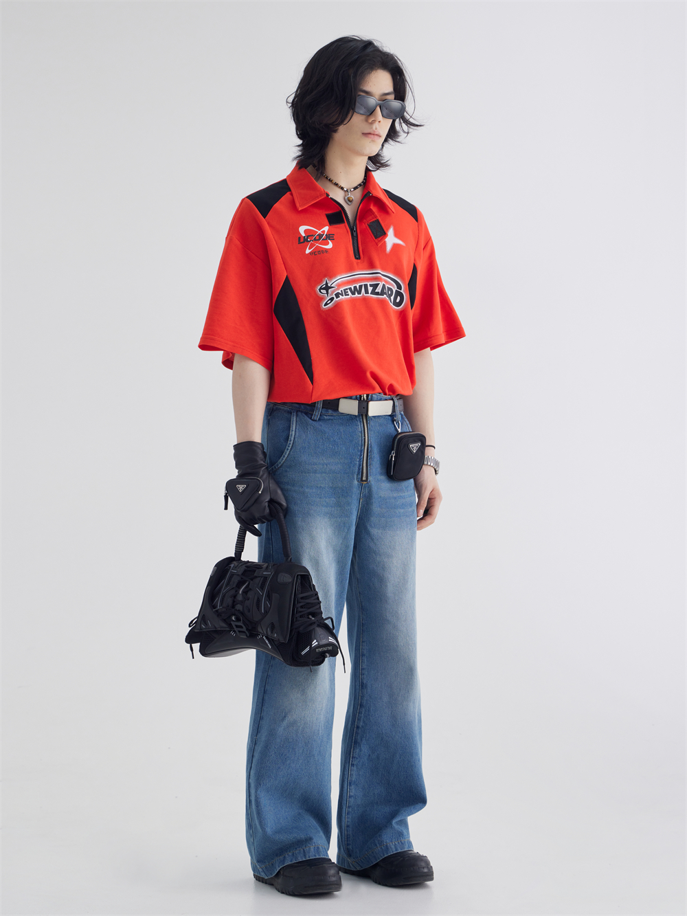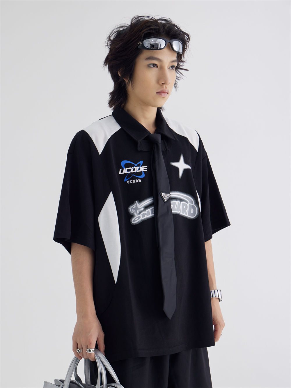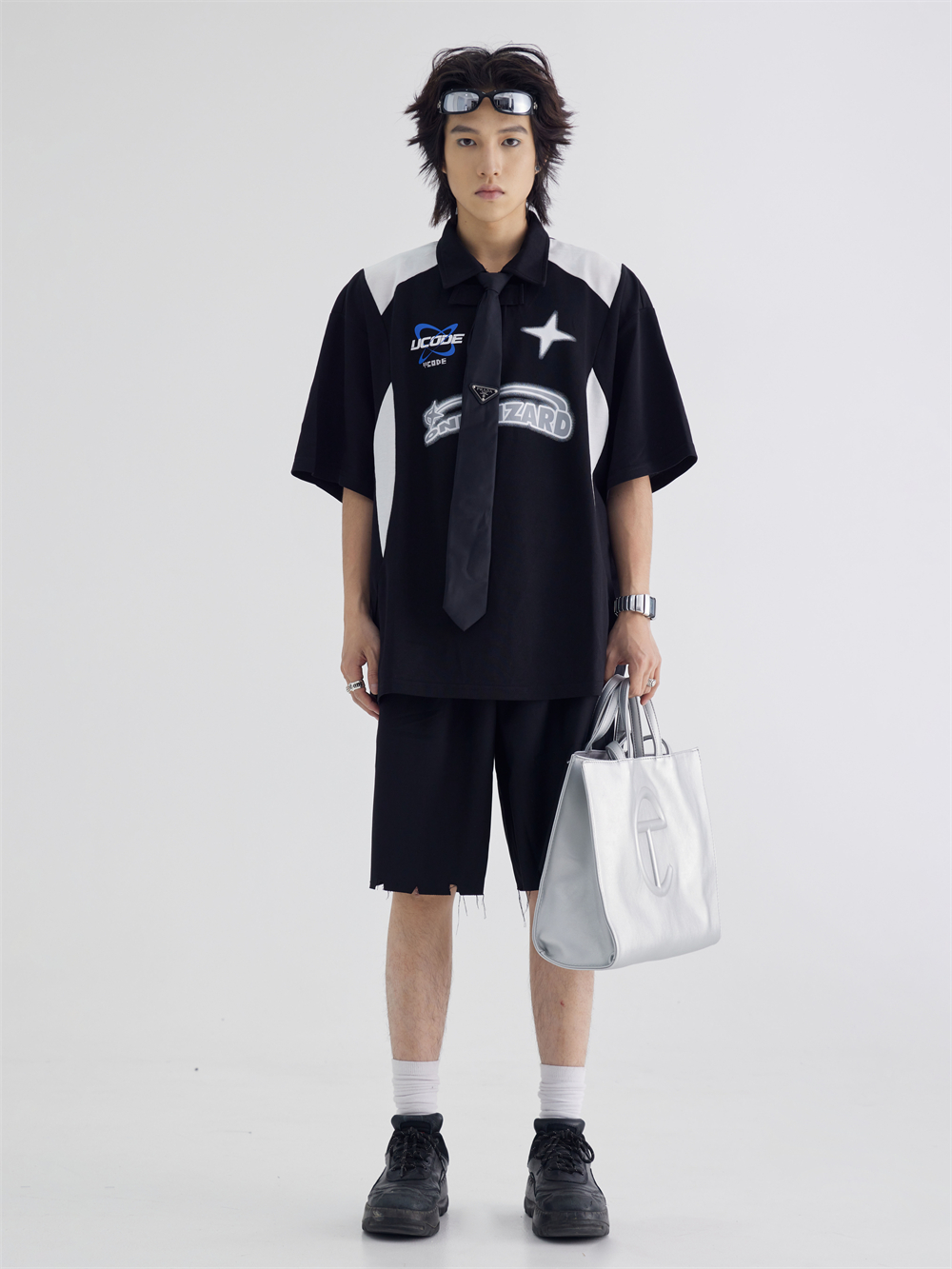 peoplestyle 新款撞色機車風翻領POLO衫情侶款高街潮流休閒上衣潮