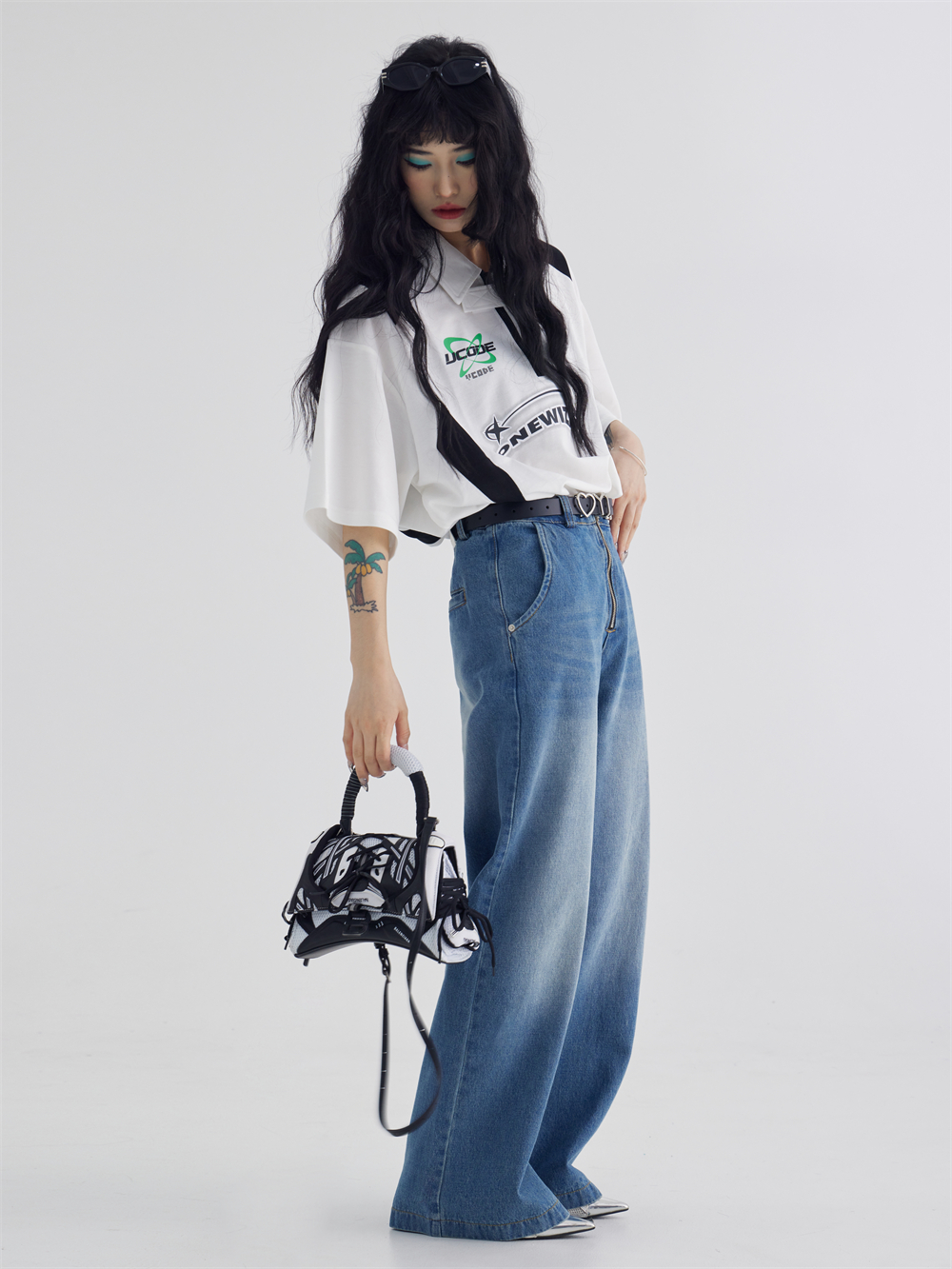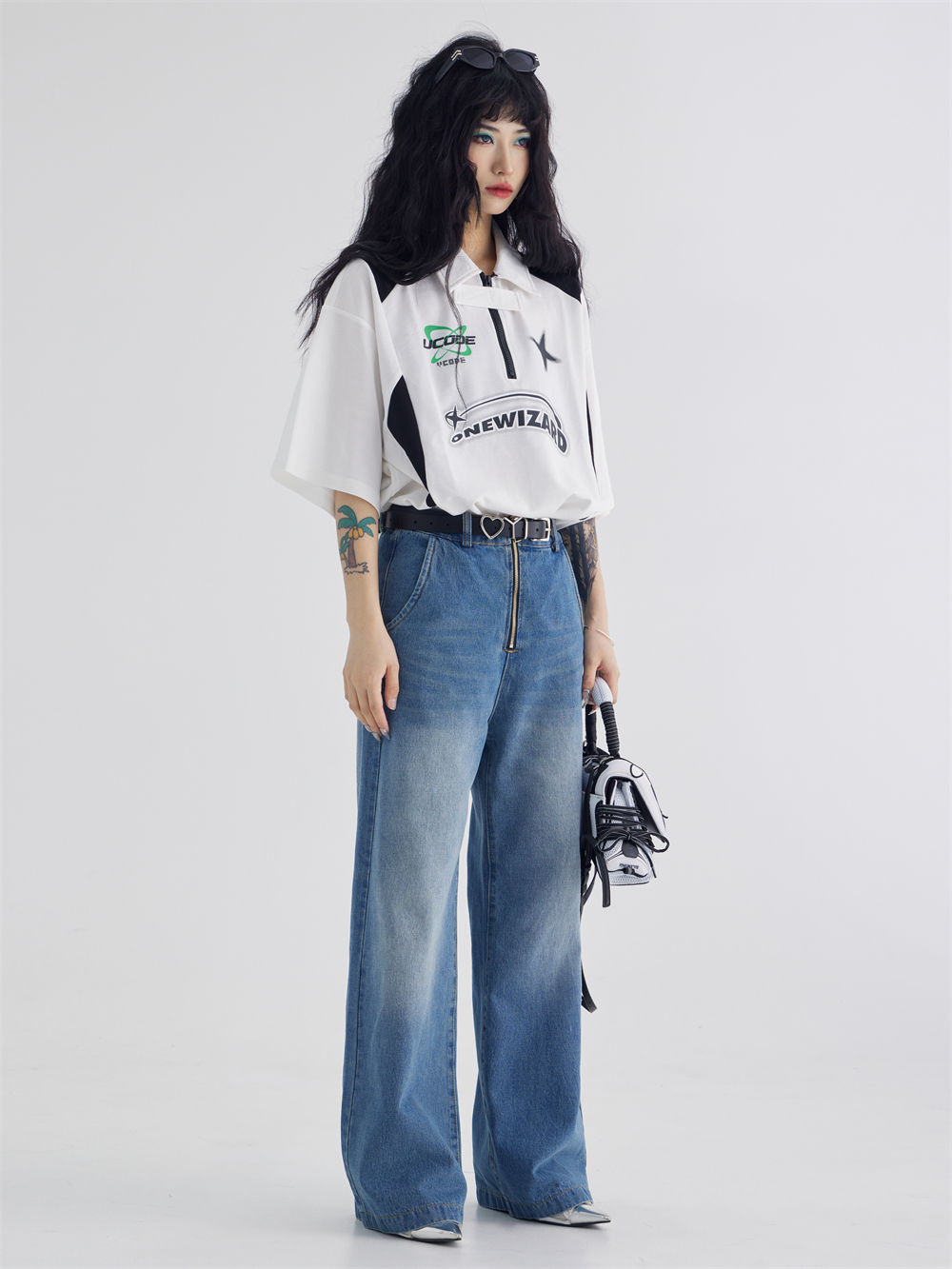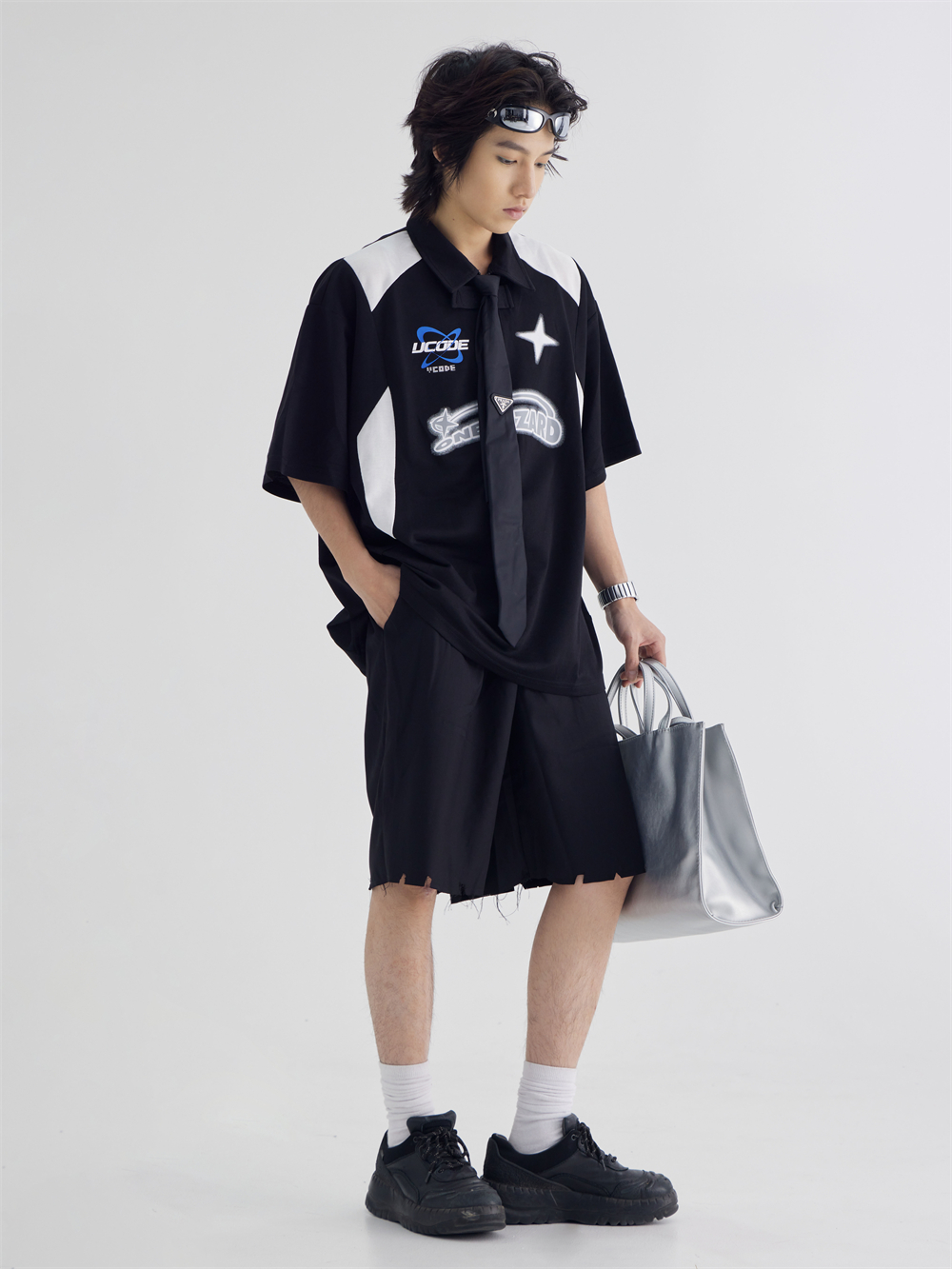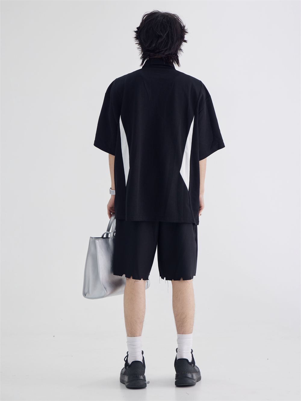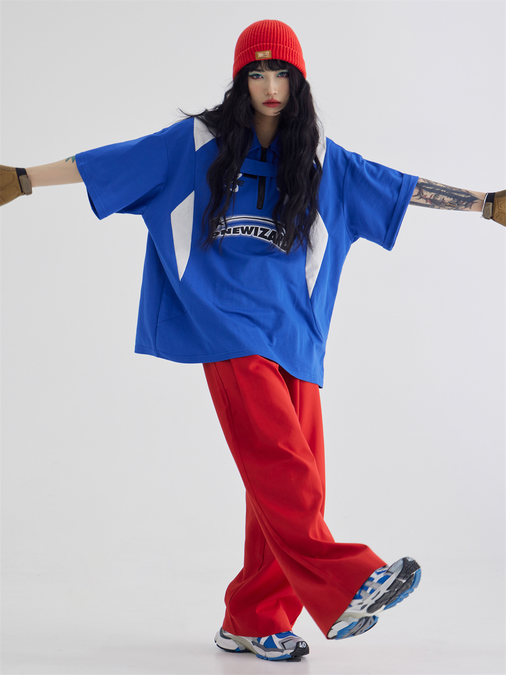 peoplestyle 新款撞色機車風翻領POLO衫情侶款高街潮流休閒上衣潮