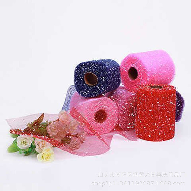 雪点纱15厘米宽 鲜花包装纸材料批发 包鲜花头 雪花纱网 花店用品