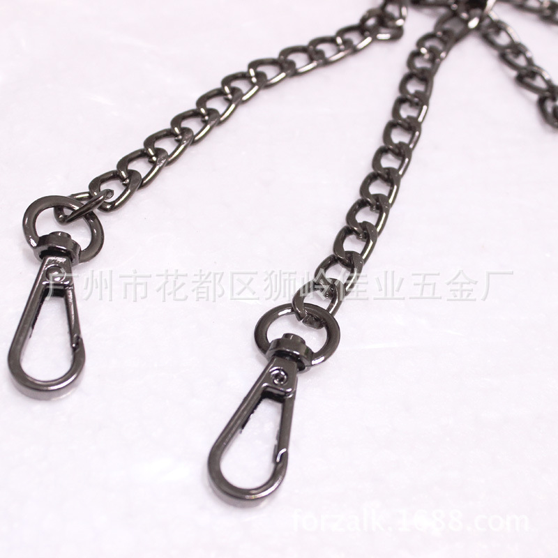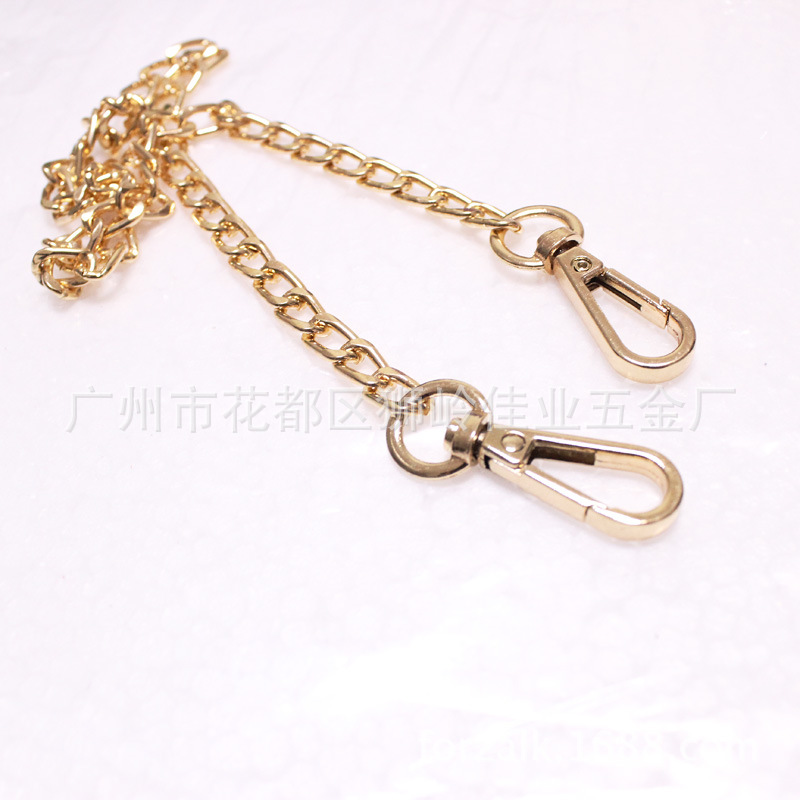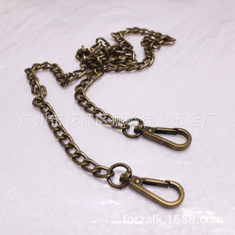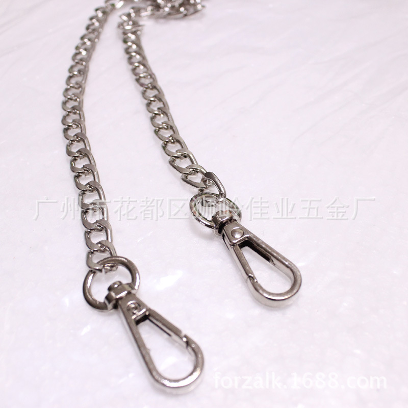 三、本店提供加工服务,你可以选好链条跟扣子及要剪的长度给客服,我们可以收加工费帮您加工成成品,如果有需要可以联系客服(加工需外发,发货时间会延后)。如果购买链条请看好算好长度,按米卖的是没加扣的。如果按条算的话都是一般都是两边加好扣子的。如果是手提一般为40-50cm,单肩一般为100cm,斜挎一般为110-120cm左右。以上只是推荐,因为个人身高及包包所到的位置不同,如果要准确的最好自己拿米尺量下哦。