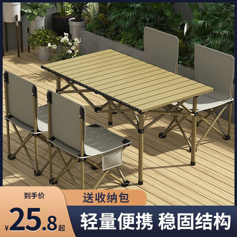 戶外摺疊桌子蛋卷桌露營用品野餐可攜式桌椅套裝組合鋁合金燒烤桌