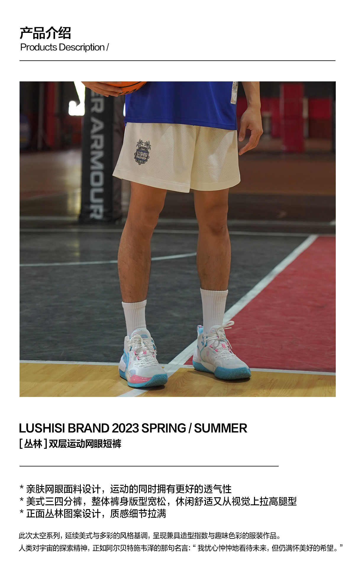 LUSHISI[叢林]大網眼透氣寬鬆速乾運動短褲四分褲不過膝夏季籃球