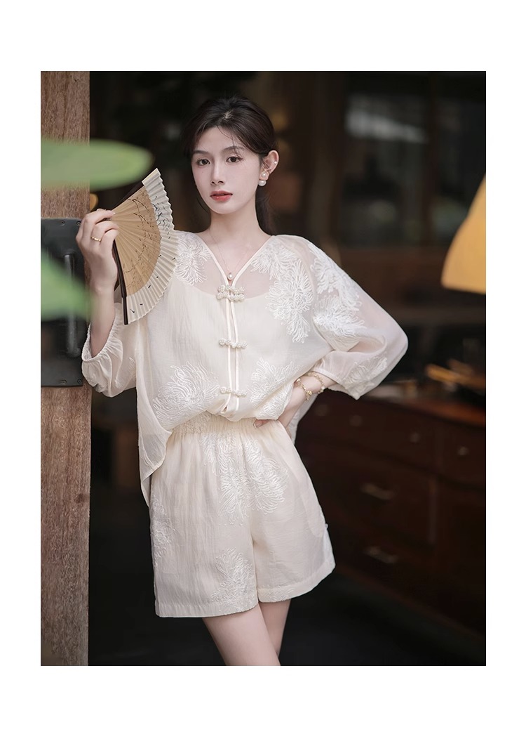 夏季流行新中式國風防曬套裝女2023年新款小香風上衣半身裙兩件套