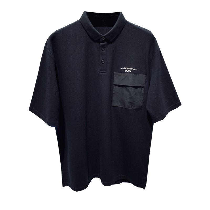 鳥先森夏季新款翻領短袖時尚字母刺繡T恤港風黑色POLO衫男潮情侶