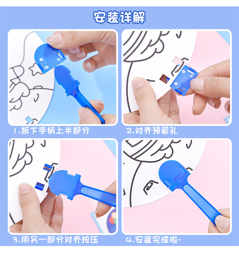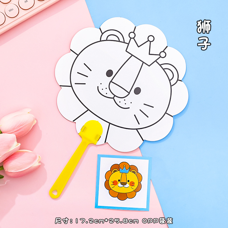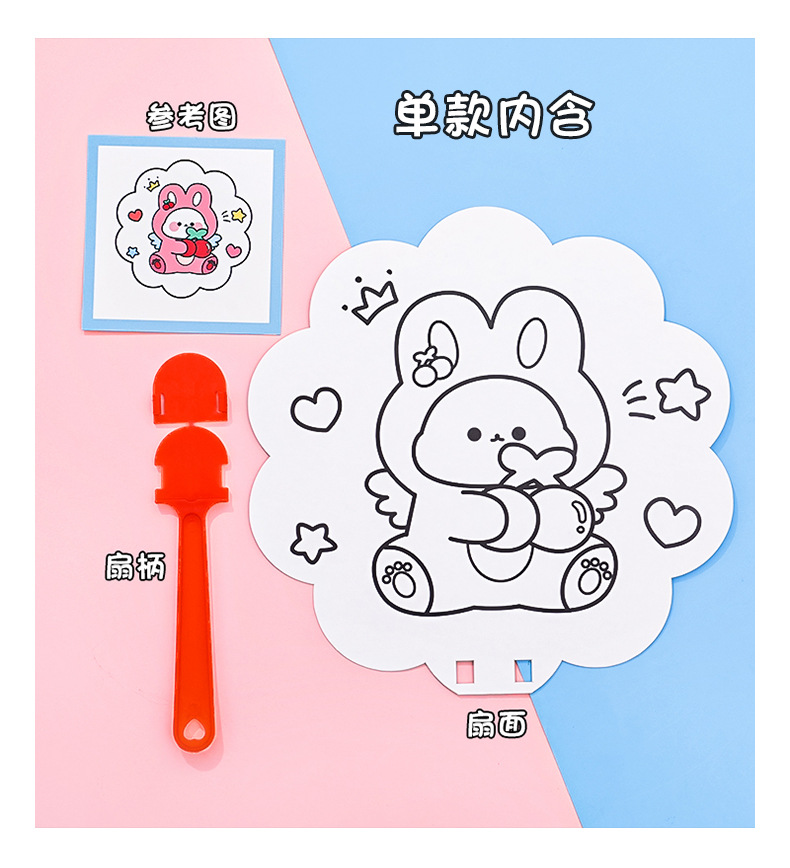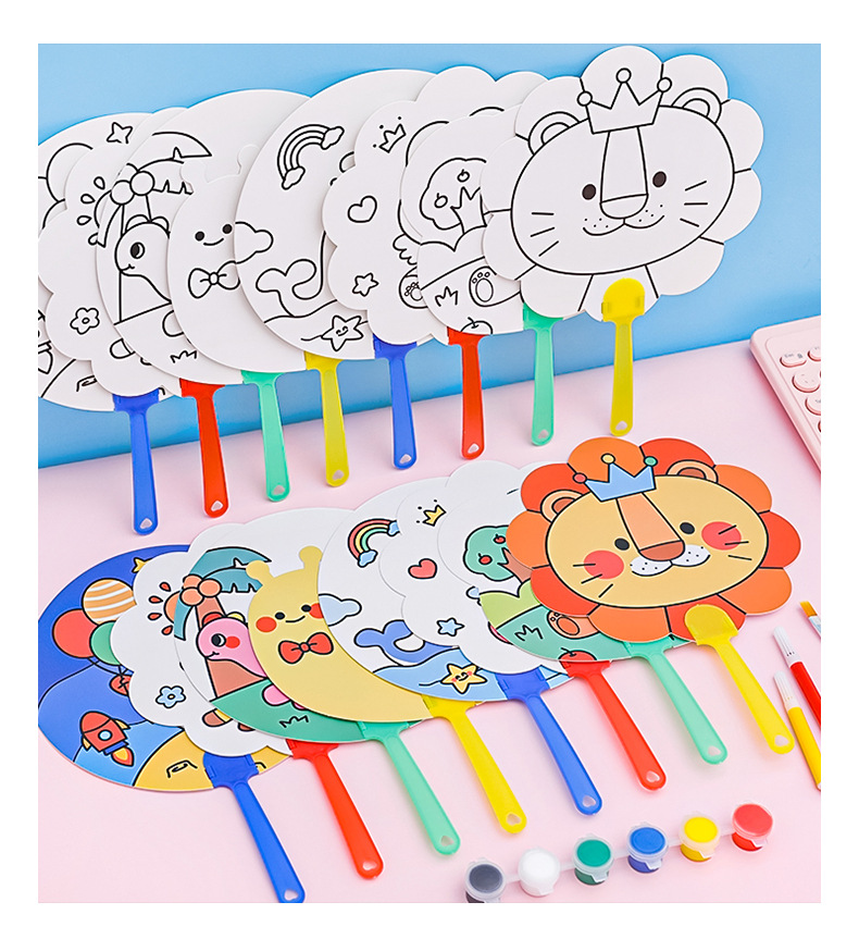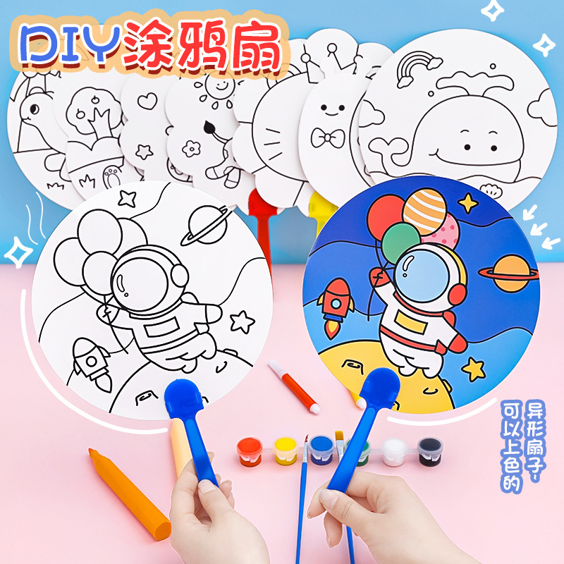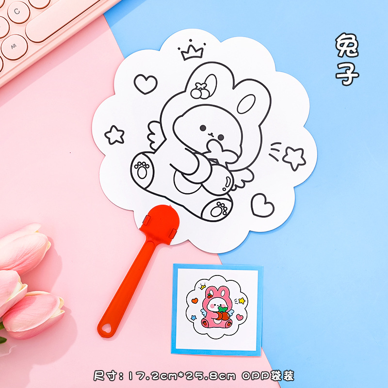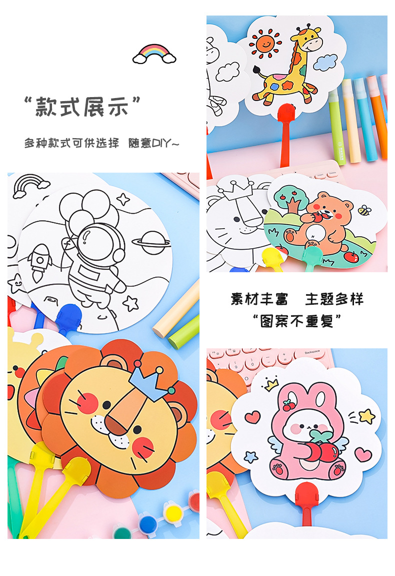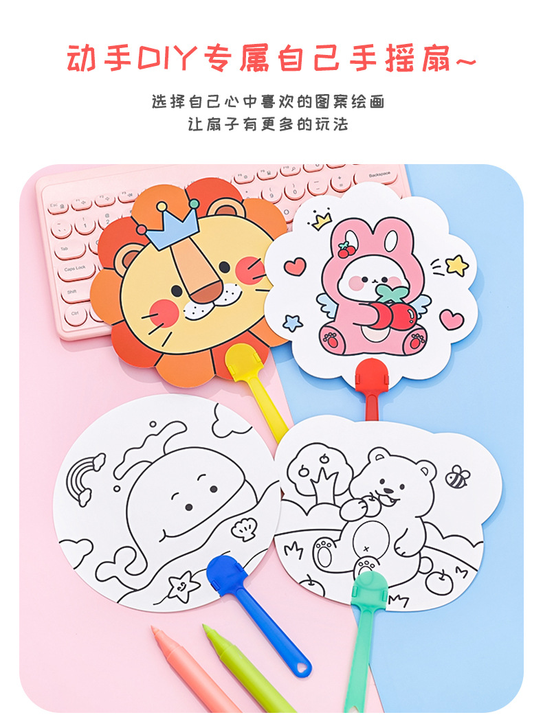 儿童卡通DIY涂鸦彩绘扇子 幼儿园益智小礼品小学生手工填色小扇子