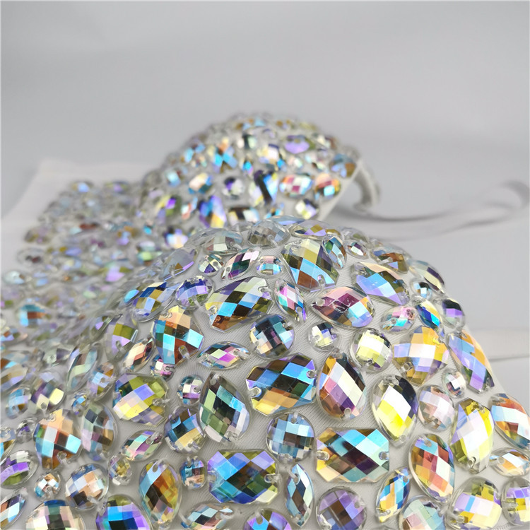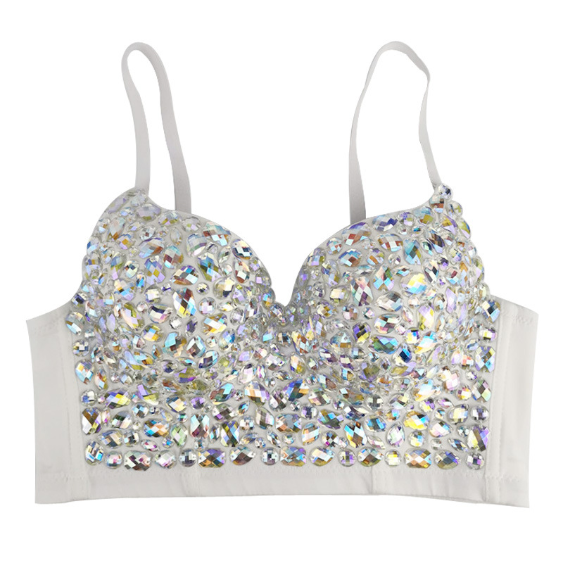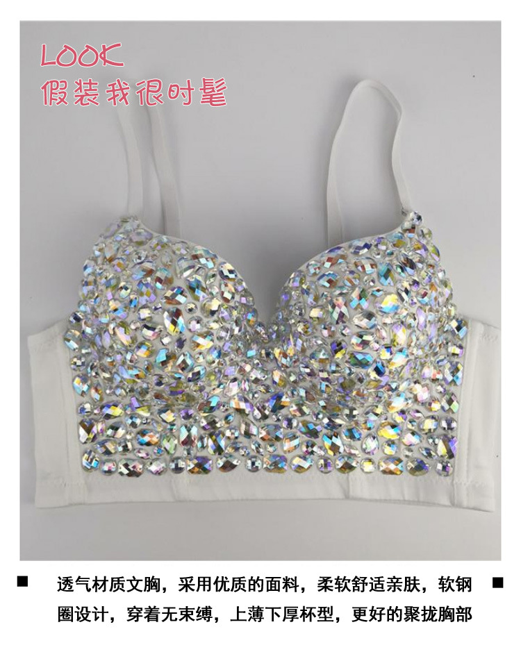 成人表演服手缝AB彩钻抹胸小心机网红夜店演出服亮片肚皮舞吊带女