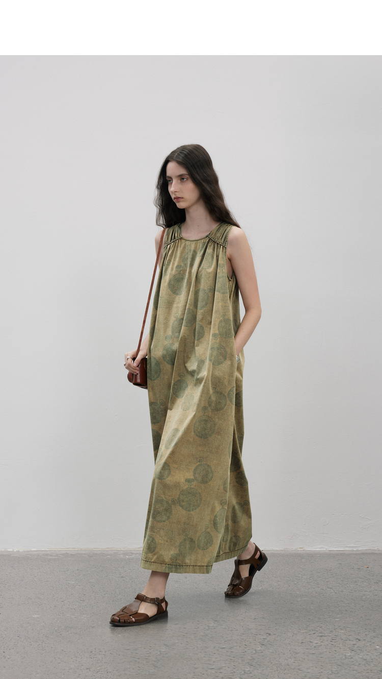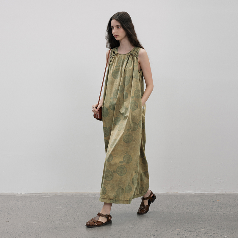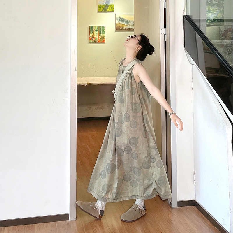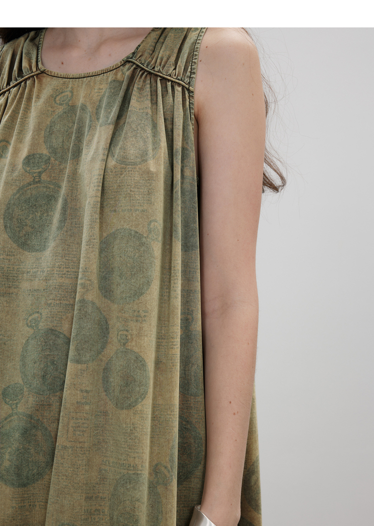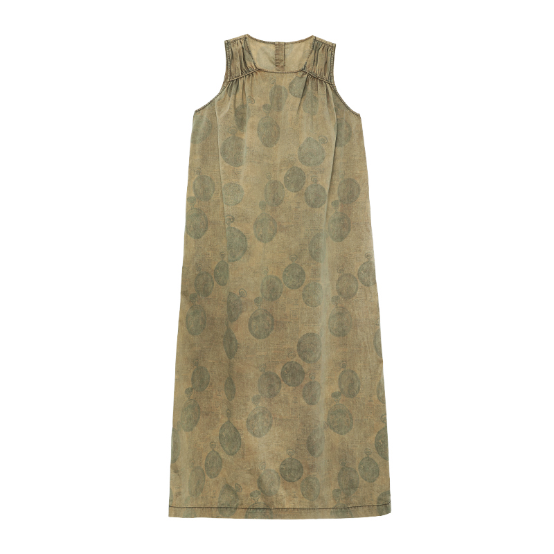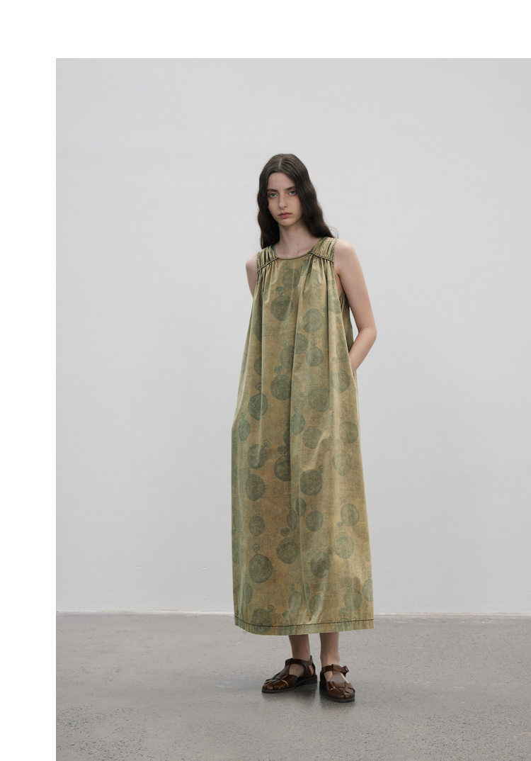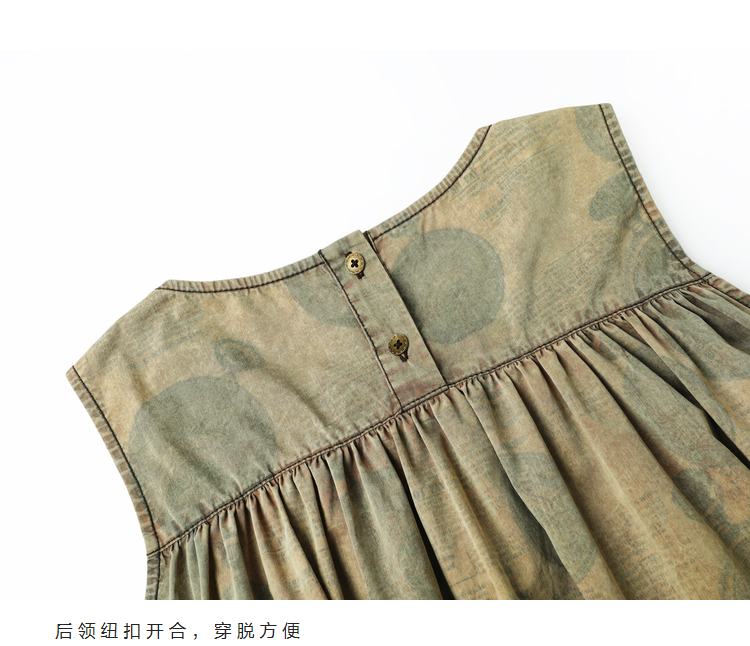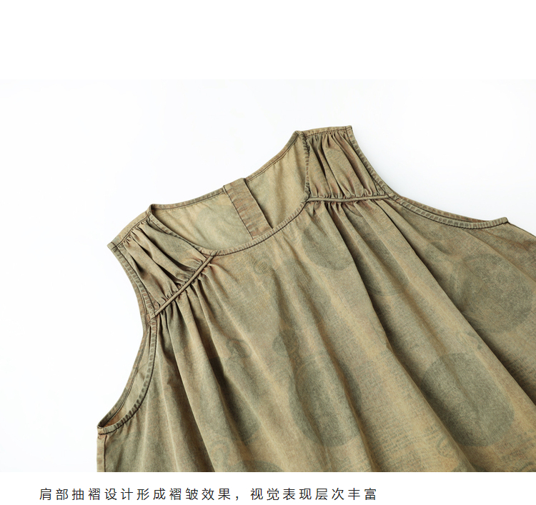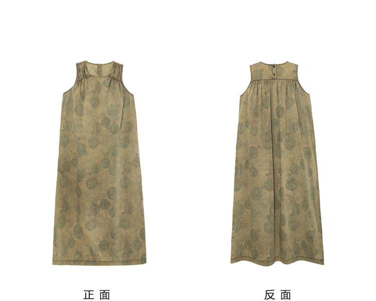 成衣染色半圓原創設計2023夏季新款印花無袖洋裝吸濕透氣親膚