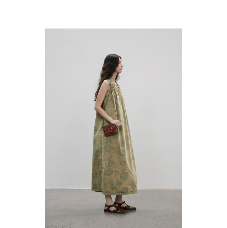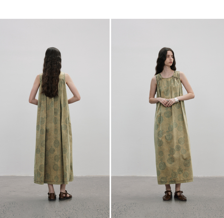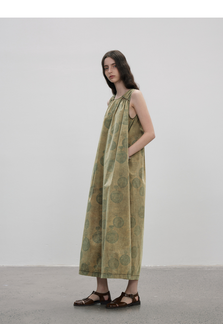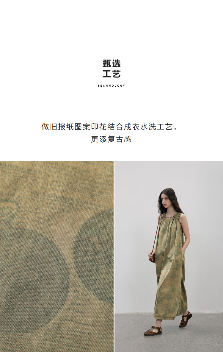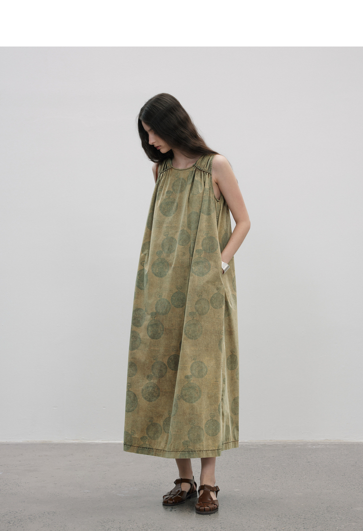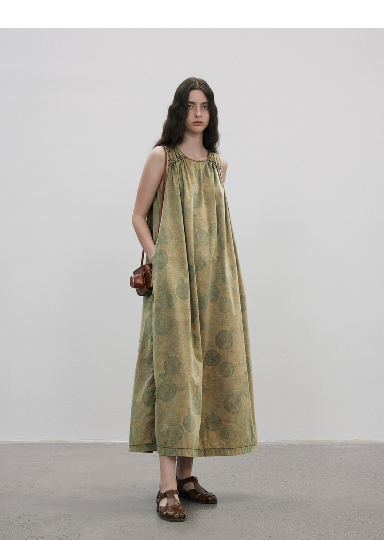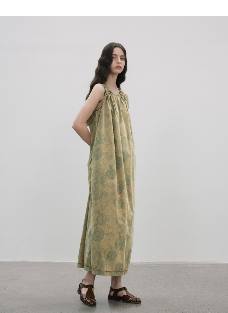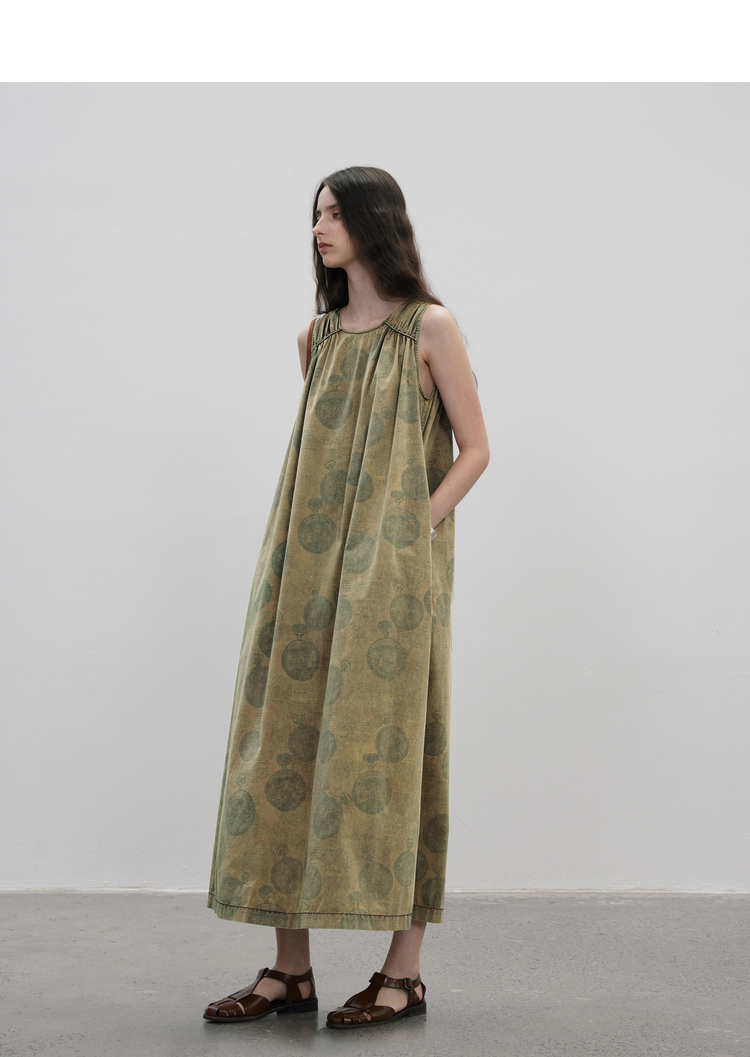 成衣染色半圓原創設計2023夏季新款印花無袖洋裝吸濕透氣親膚