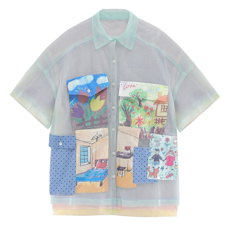 Blank palette|趣味手繪別致設計感上衣夏薄款短袖襯衫港風女夏