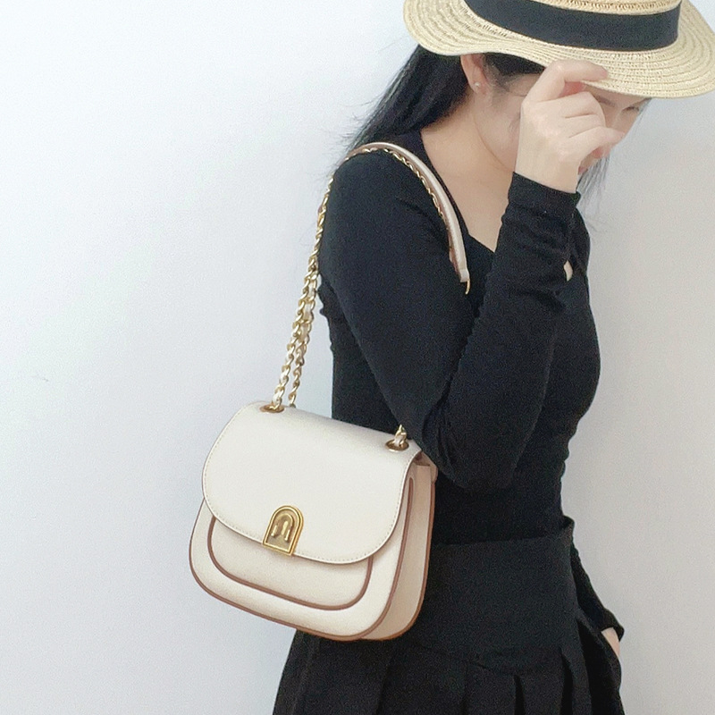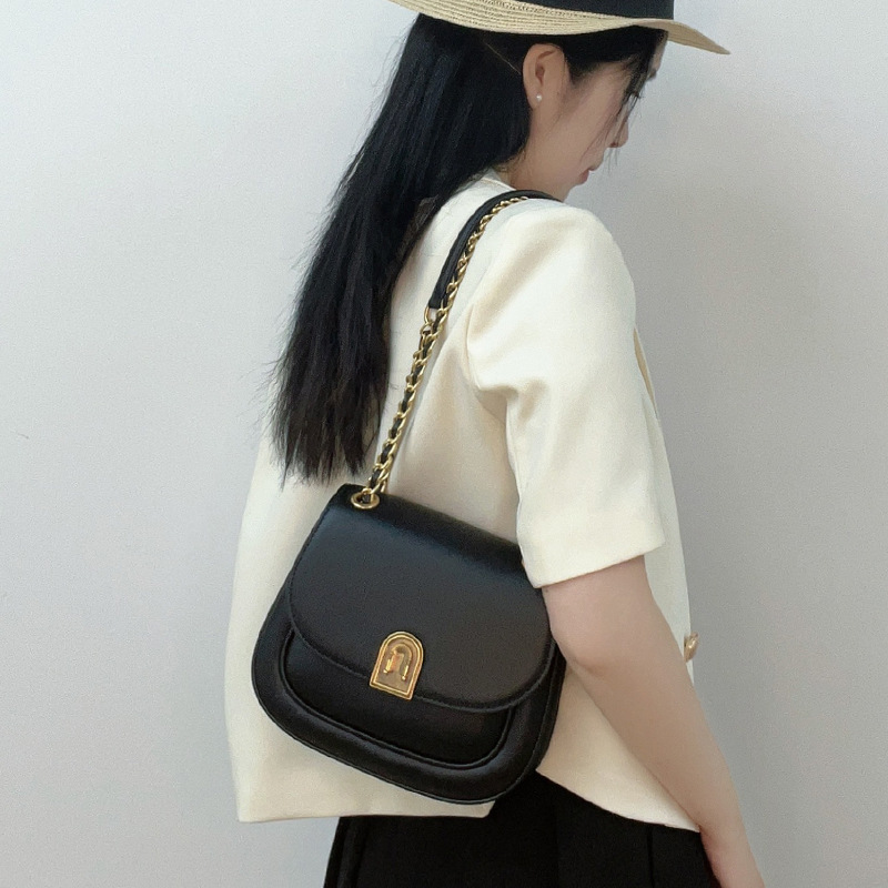 新款牛皮马鞍包2024春季简约通勤百搭撞色单肩斜挎腋下包