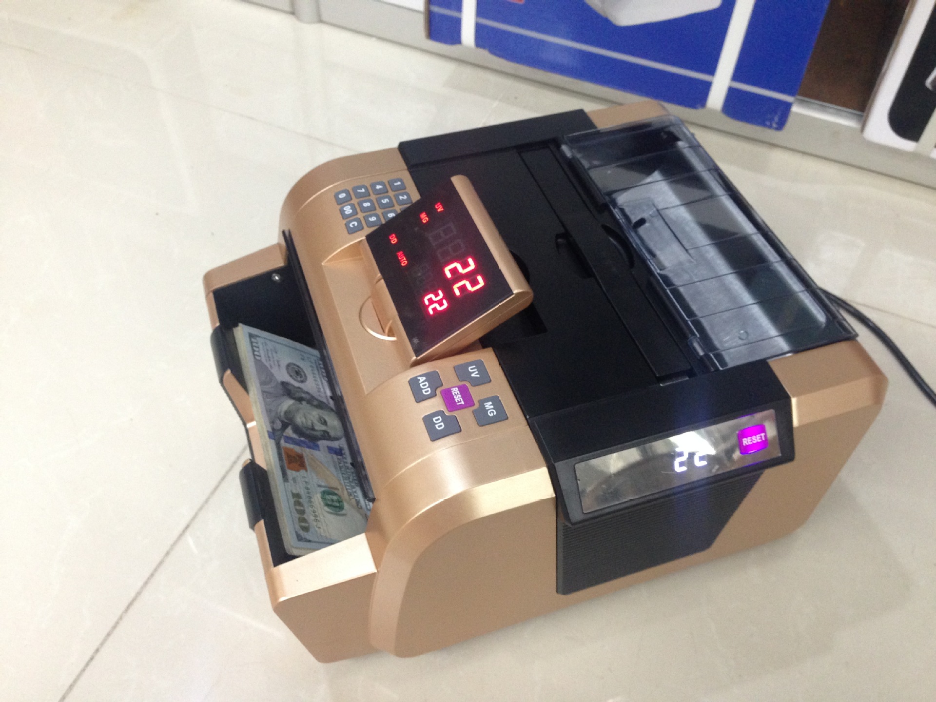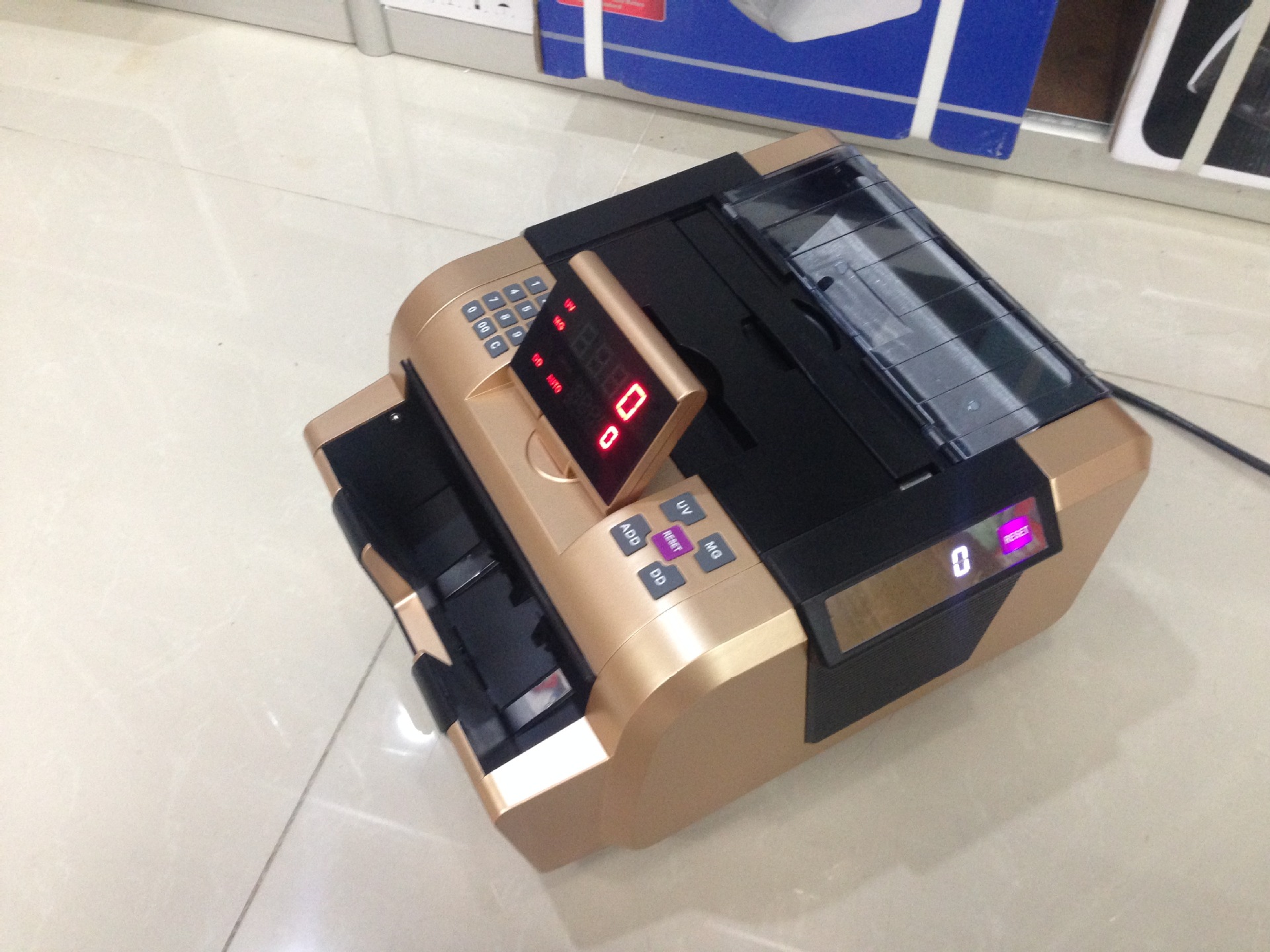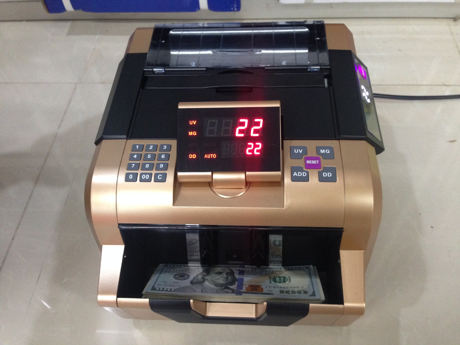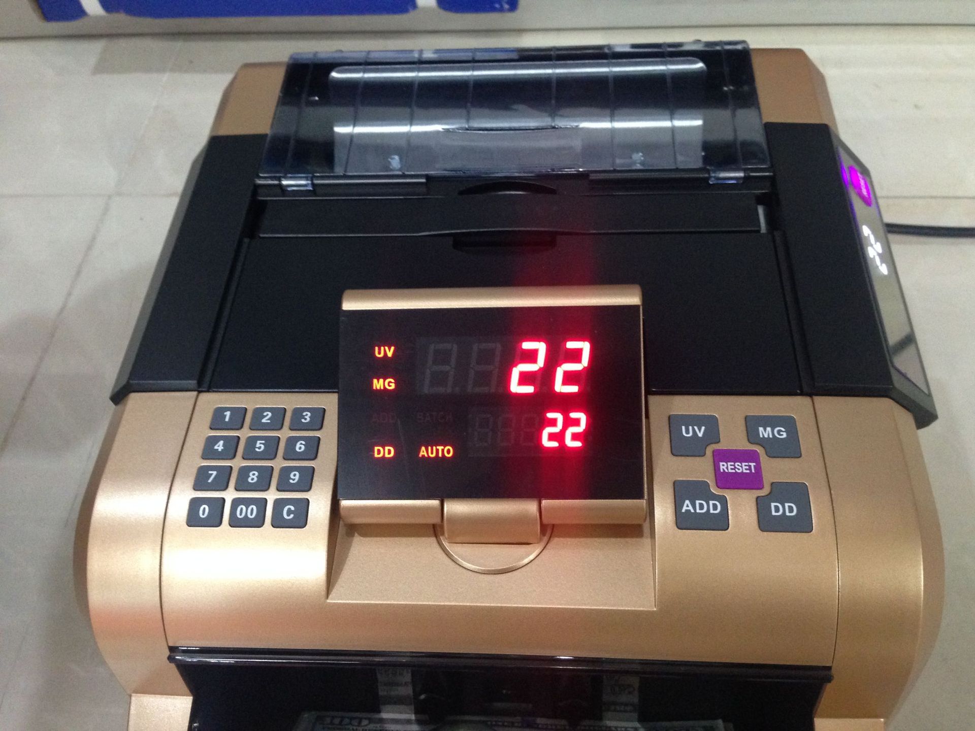 5. Feature and Specification: a). With good quality and nice design, it is a heavy duty backloading money counter. b). It can count and detect all kinds of paper and polymer banknotes in the world. c). UV, MG, IR, DD detecting sensitivity can be adjusted. d). It has self-examination functions. e). Its software can be upgrade f). It has numeric keys, which is more convenient for batch fucntion g). It has 2 dust covers h). Counting Speed: >1,000pcs/min i). Hopper’s Size: 190mm j). Money counter’s size: 320mm x 270mm x 175mm k). Display Screen: Main display screen is LED. Side display screen is LCD(Lens). Main display screen can be rotated for 360 degree. l). Gross Weight: 15.5kgs (2pcs) m). Size of Carton: 640mm x 385mm x 255mm (2pcs) n). Hopper Capacity: 300pcs o). Stacker Capacity: 200pcs p). Voltage and Frequency: 220V, 50Hz or 110V, 60Hz