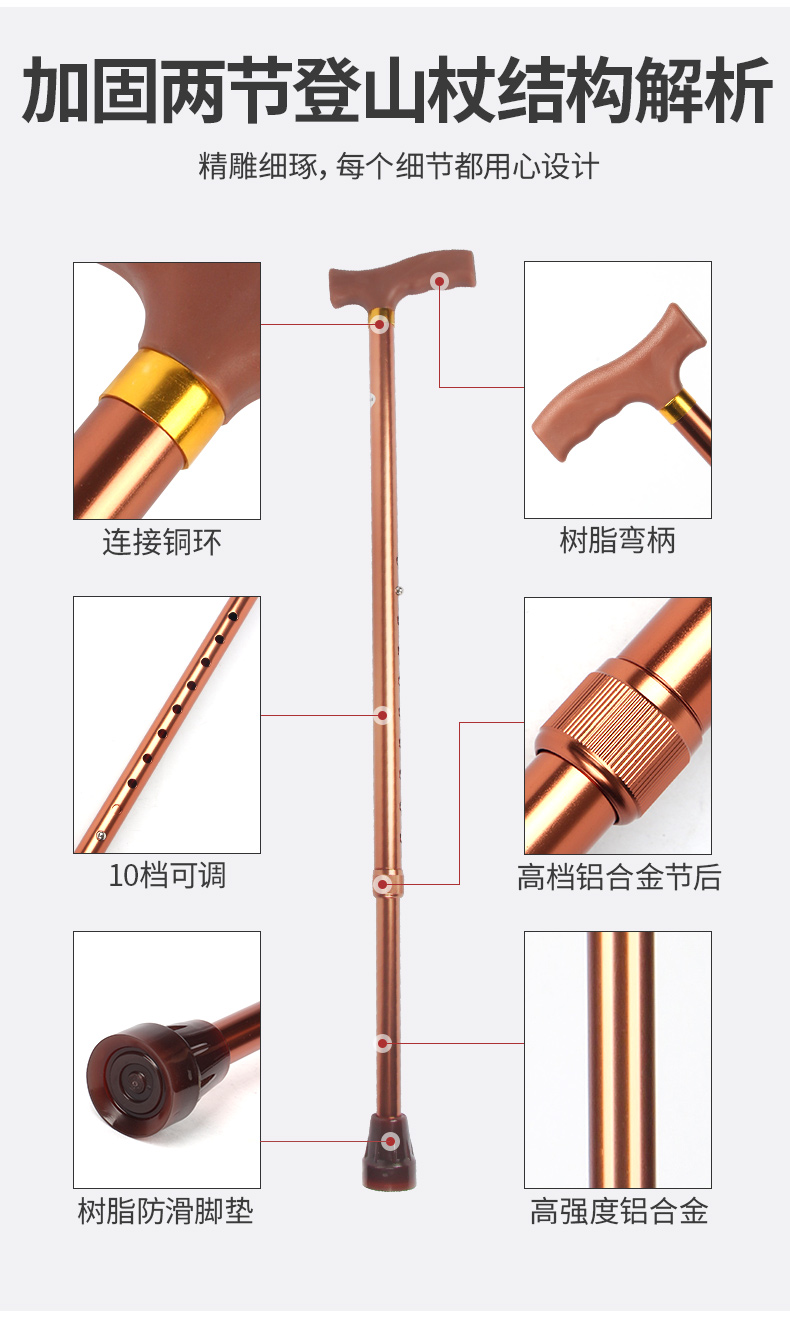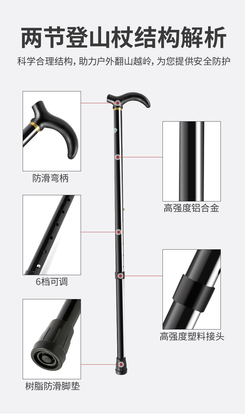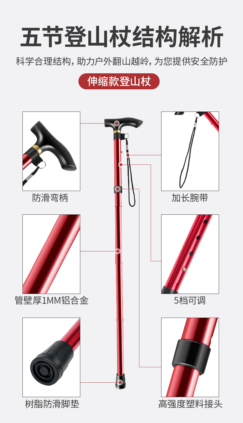 戶外裝備旅遊用品登山杖柺杖手杖柺棍超輕鋁合金五節伸縮老人柺杖