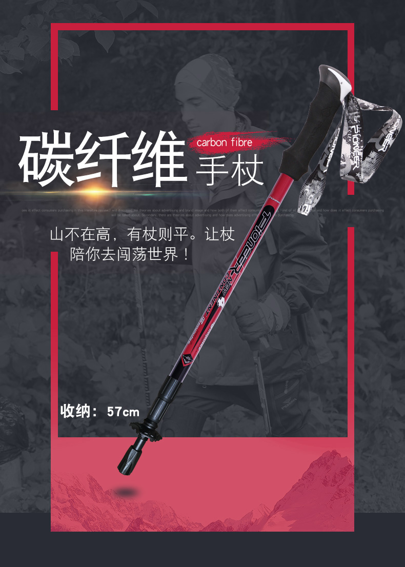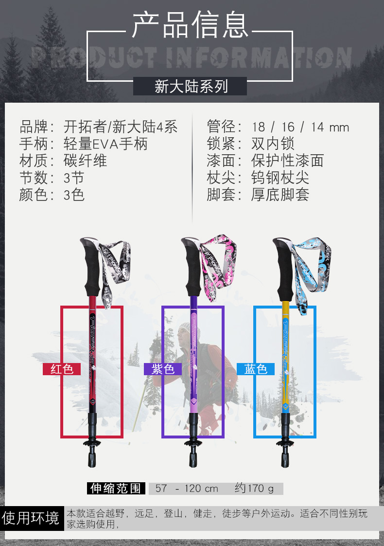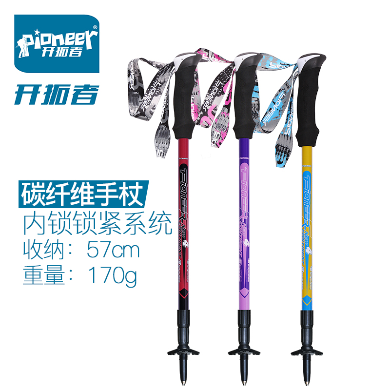 開拓者內鎖碳纖維登山杖 三節可伸縮碳纖維手杖 戶外登山旅行裝備