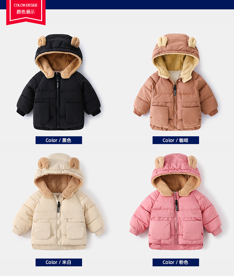 颜色 黑色立体帽棉衣,咖啡立体帽棉衣,米白立体帽棉衣,粉色立体帽棉衣,红色立体帽棉衣