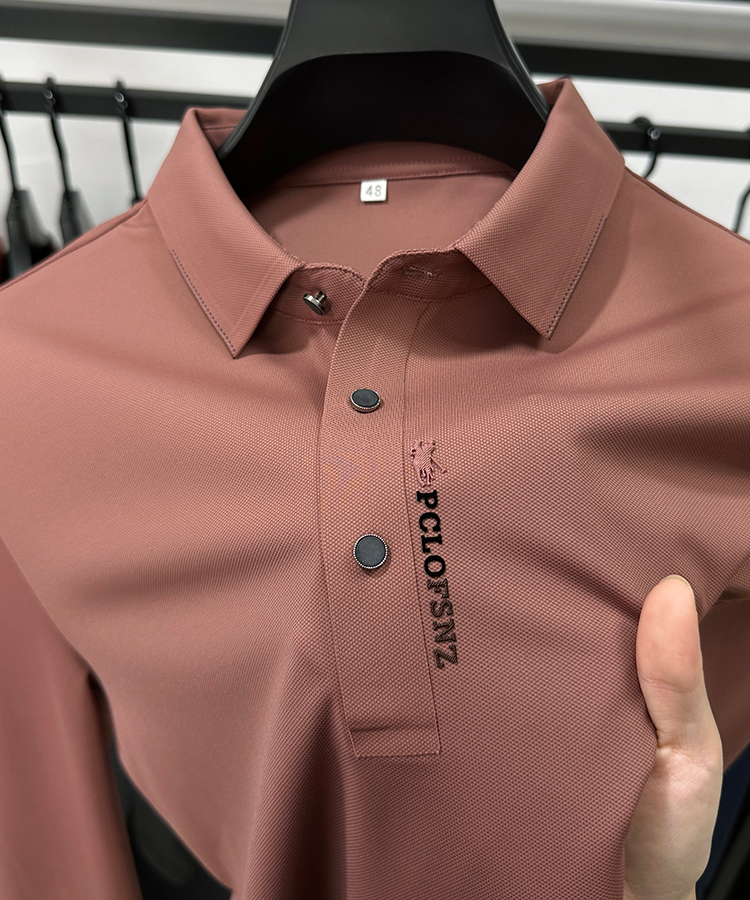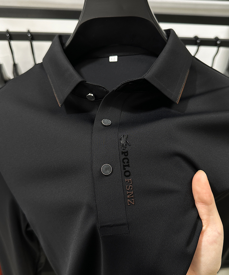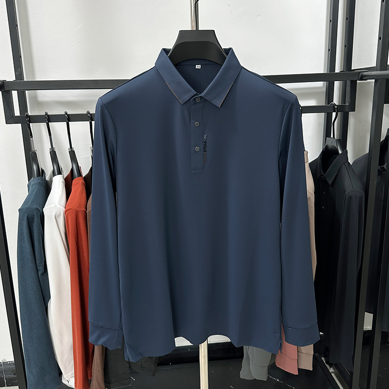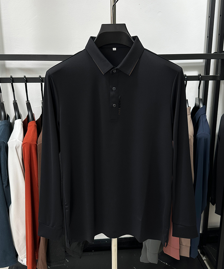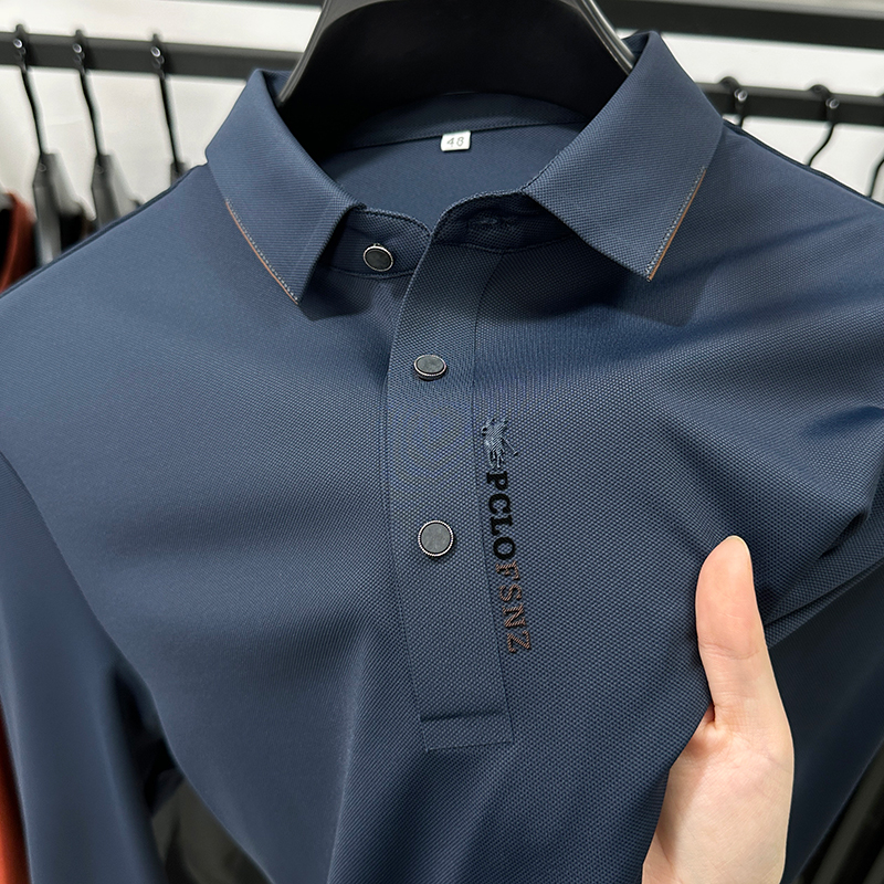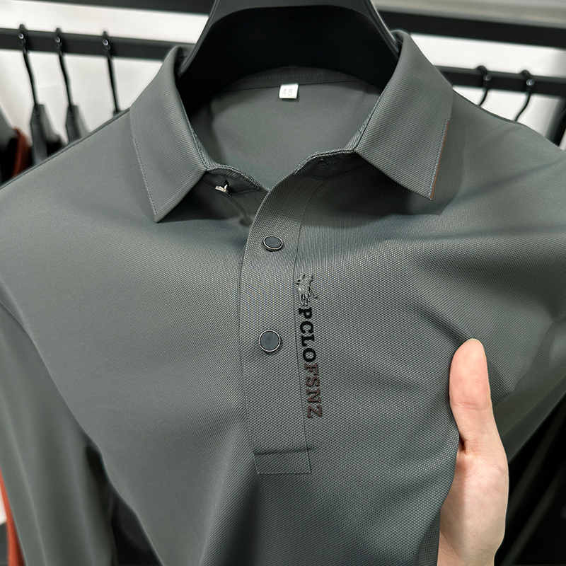 無痕開叉POLO衫男秋季新款長袖T恤商務寬鬆中年爸爸裝翻領上衣潮