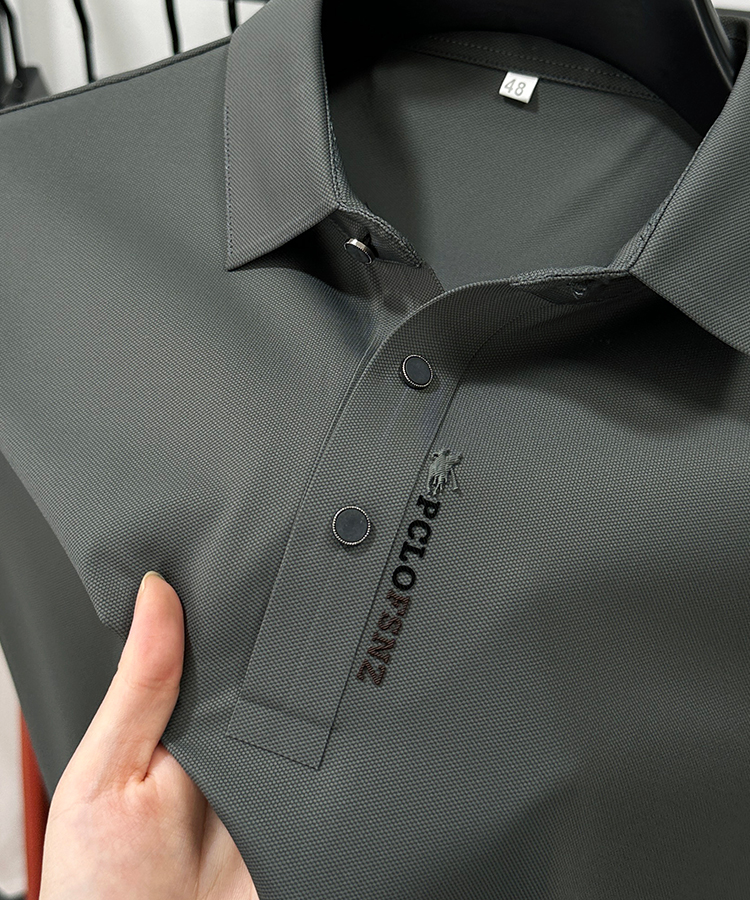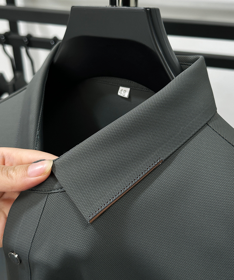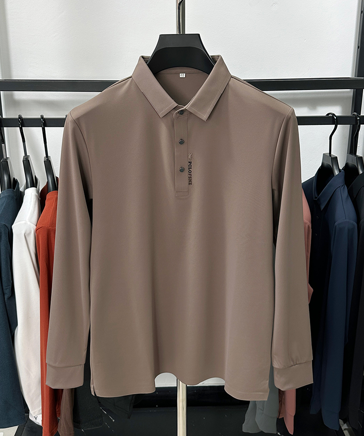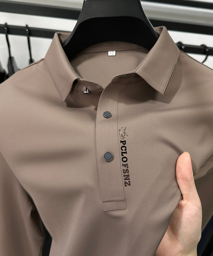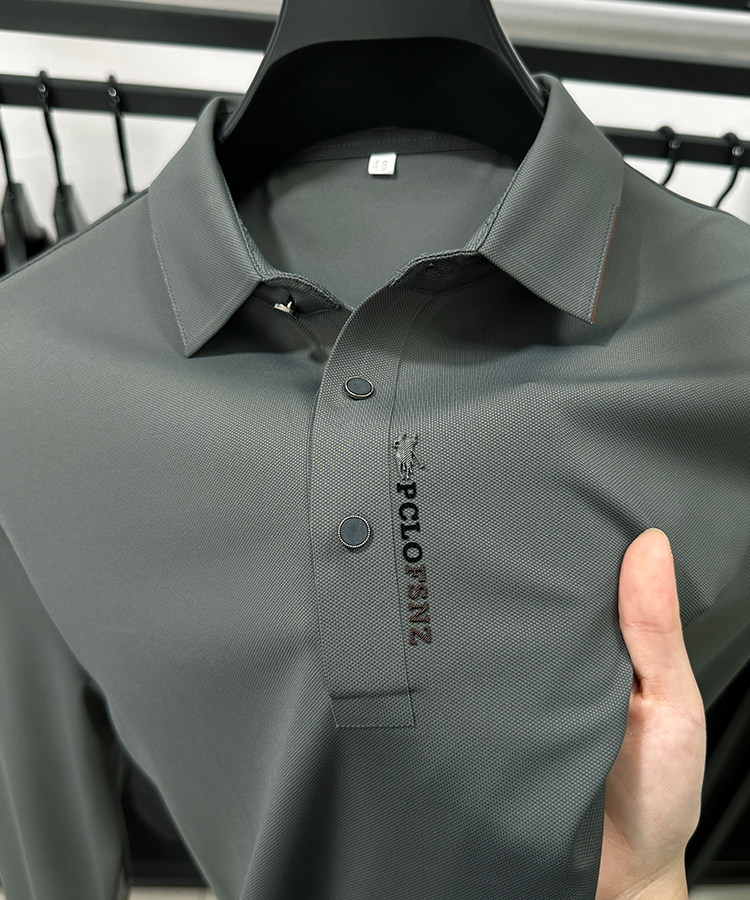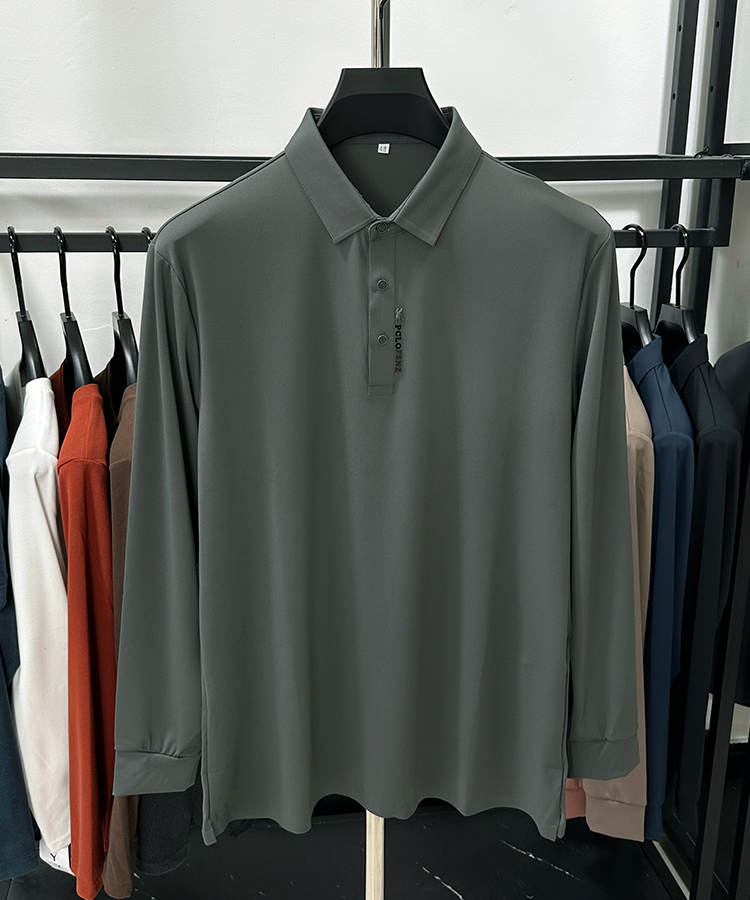 無痕開叉POLO衫男秋季新款長袖T恤商務寬鬆中年爸爸裝翻領上衣潮
