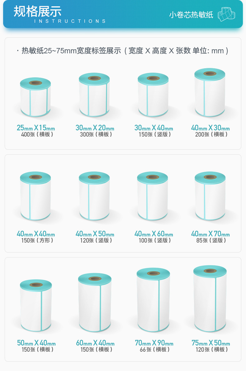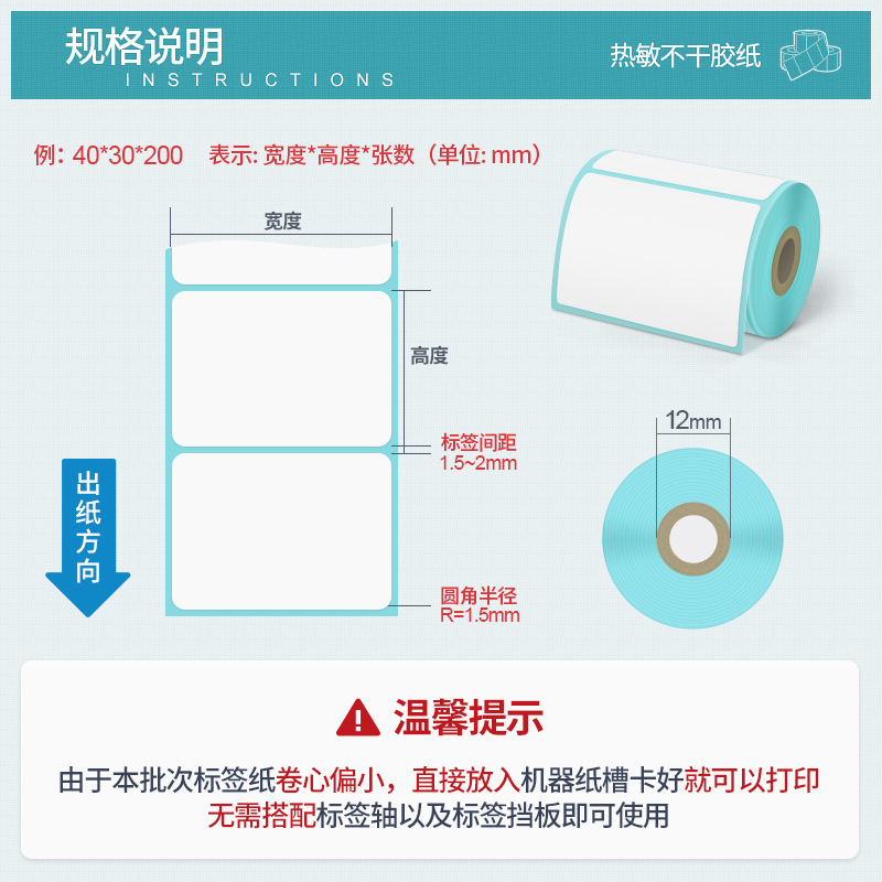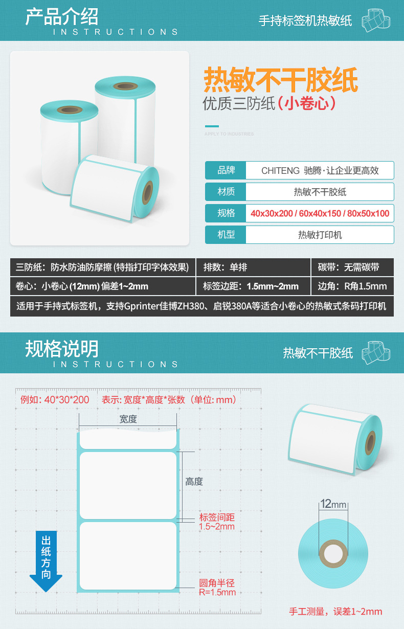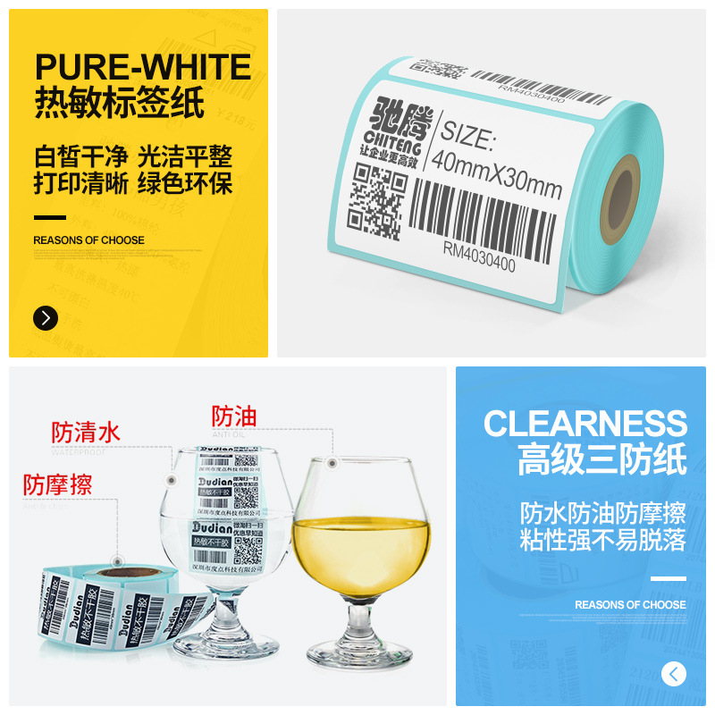 驰腾小卷芯热敏纸 便携打印机专用标签纸三防热敏不干胶标签贴纸
