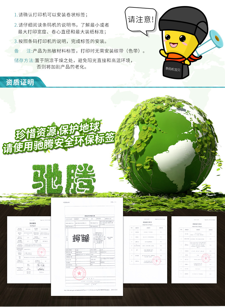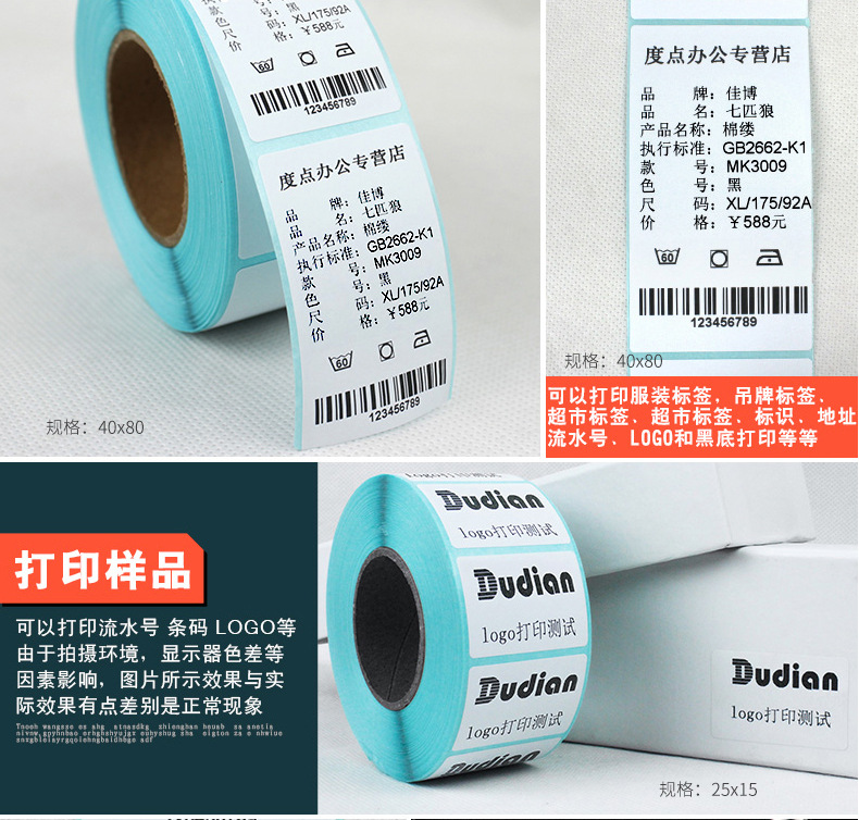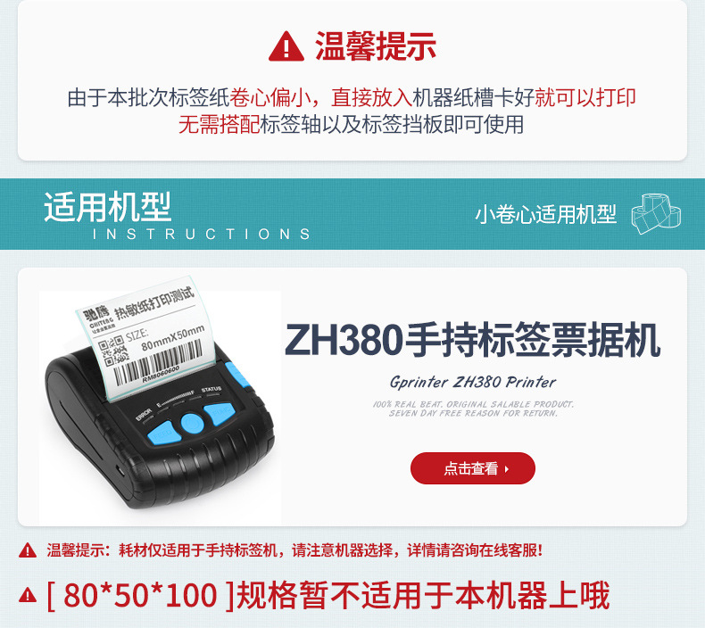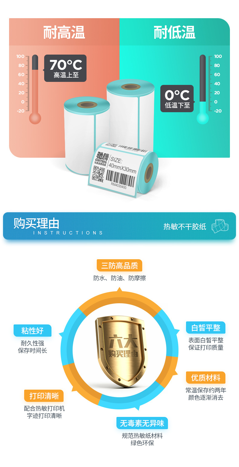 驰腾小卷芯热敏纸 便携打印机专用标签纸三防热敏不干胶标签贴纸