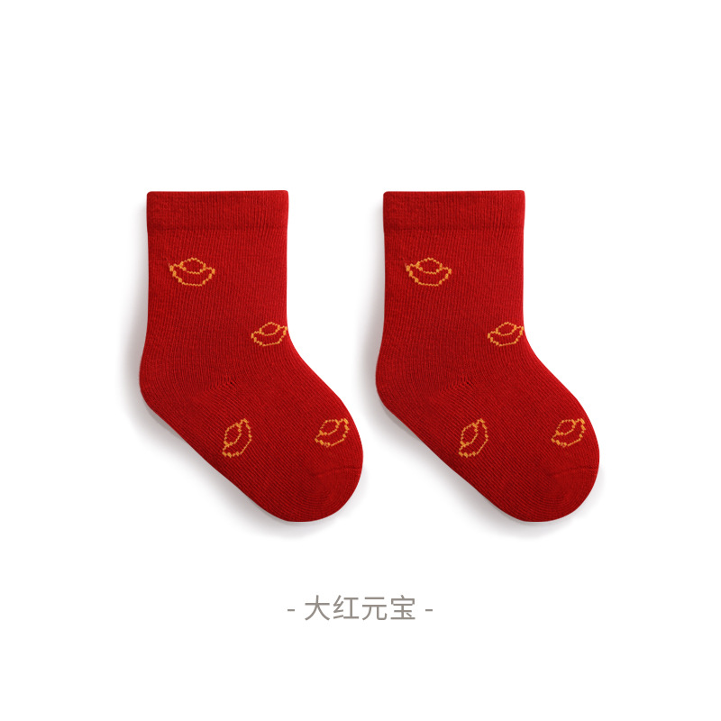 新生儿宝宝袜子松口无骨不勒脚婴儿袜子男女新年周岁大红中筒棉袜