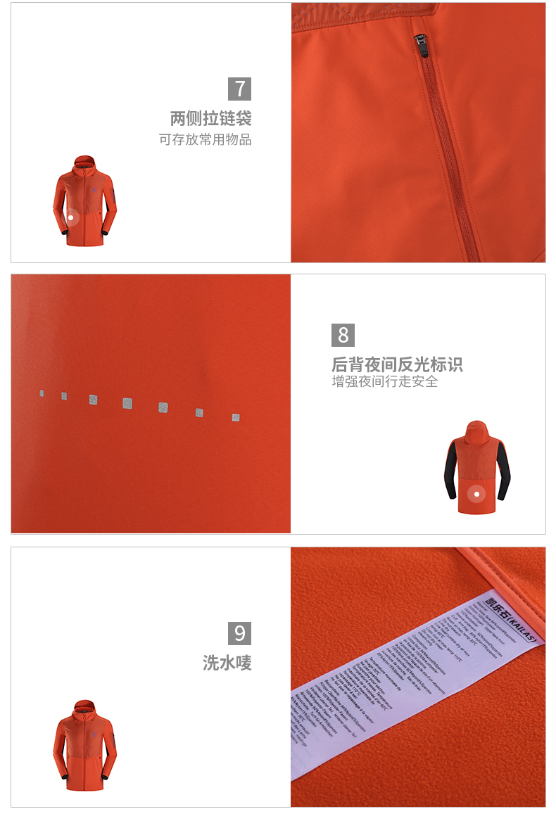 凱樂石男女越野跑輕量運動上衣軟殼衣防風防潑水P棉外套春秋棉服