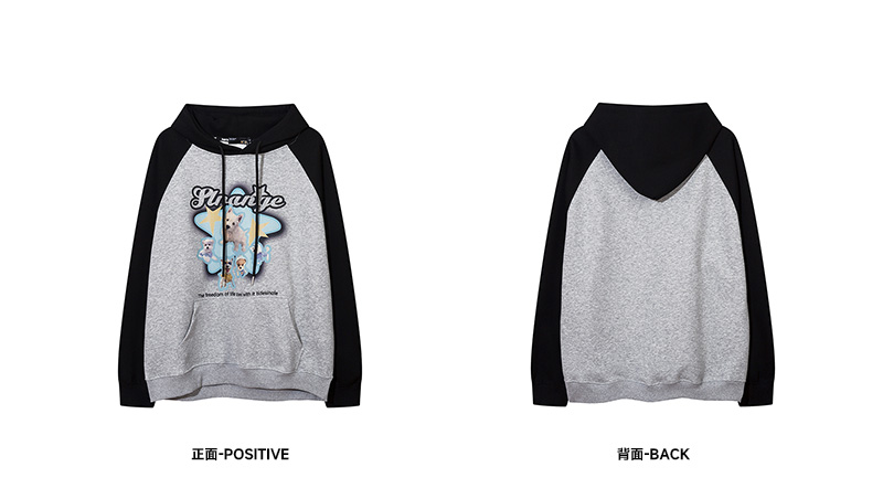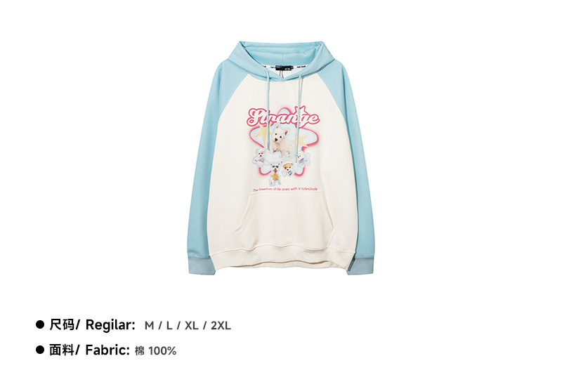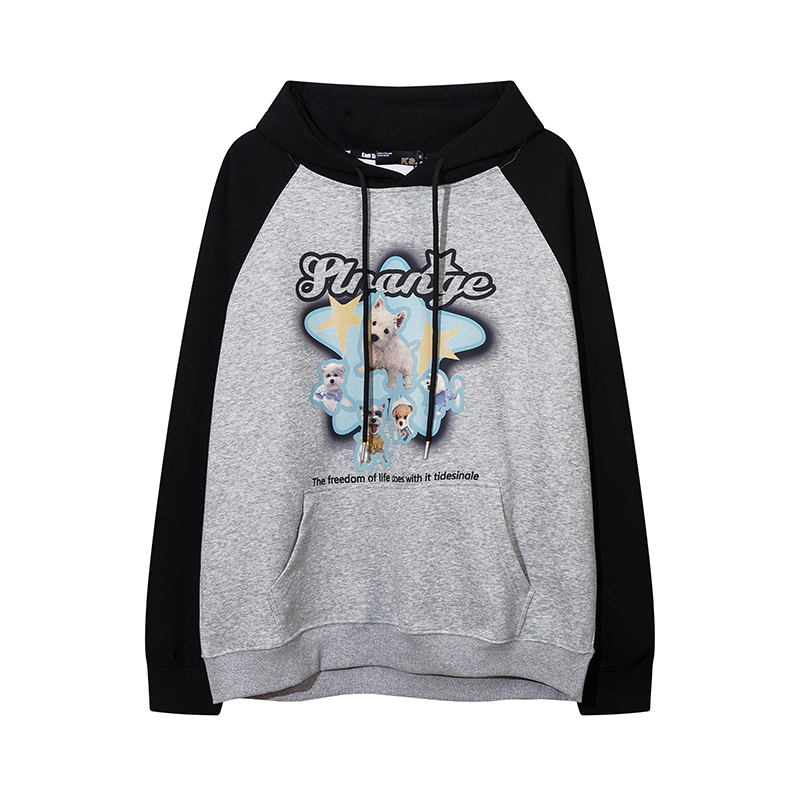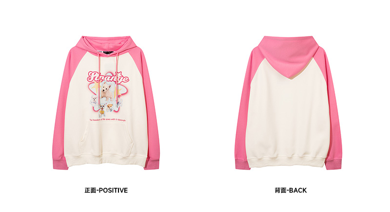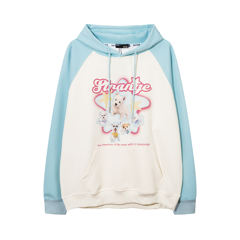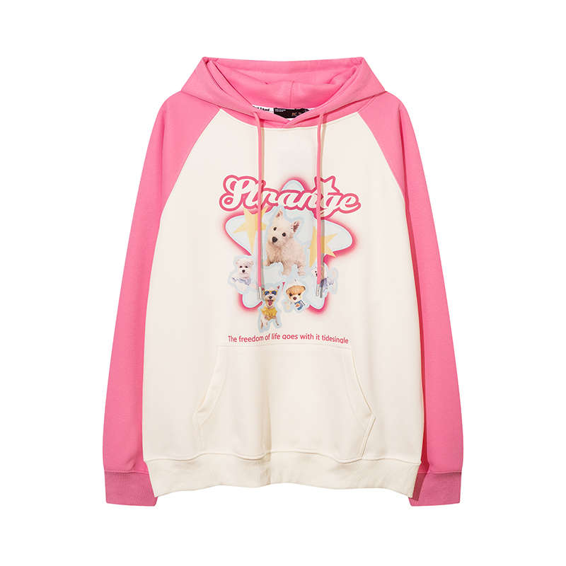 KK Pink原創多巴胺美式甜酷小狗印花連帽運動衫寬鬆情侶插肩袖外套