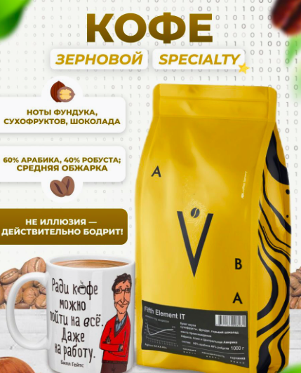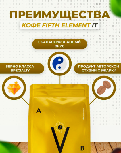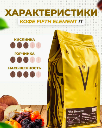 ABA coffee factory Авторский натуральный кофе в зернах 1кг FIFTH Element IT