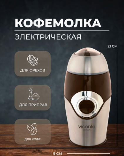 Описание: Стильная кофемолка из нержавеющей стали - очень удобная в повседневной жизни для настоящих ценителей свежемолотого кофе. Кофемолка электрическая предназначена для семей, которые любят выпить по утрам чашечку свежесваренного кофе. Легкая, удобная - кофемолка из нержавеющей стали Ваш помощник для приготовления вкусного бодрящего кофе из свежих перемолотых зерен кофе. Кофемолка для кухни имеет всего одну кнопку управления, что обеспечивает легкость управления помолом. Кофемолка электрическая мощная - обеспечит идеальный помол зерен кофе, а измельчительный нож изготовлен из высококачественной пищевой нержавеющей стали. Кофемолка стальная имеет импульсный режим работы и позволит тщательно измельчить в том числе и особо твердые кофейные зерна разной степени прожарки или сушки. Кофемолка мощная отличный подарок для каждого любителя вкусного кофе. Кофемолка электрическая мощная поможет в приготовлении вкусного и насыщенного кофе, за счет мелкого помола, который обеспечивает мощный двигатель. Мощность 150-300 Вт - это самая оптимальная мощность, для долговечности кофемолки, а так же для качественного, а самое главное мелкого помола кофейных зерен. Степень помола зависит от его продолжительности: чем дольше, тем мельче. Кофемолка легко справится с измельчением круп, орехов, специй, сухарей и приправ. Кофемолка электрическая оснащена системой защиты от перегрева двигателя, поэтому Вам не стоит переживать, что при длительном использовании устройство может перегореть. Корпус кофемолки изготовлен из высококачественной нержавеющей стали, что впишется в интерьер каждой кухни и не оставит без внимания каждую домохозяйку. Лаконичный дизайн кофемолок сэкономит пространство. Кофемолка зерновая поможет Вам получить желаемую степень помола для бесподобного вкуса и аромата напитка. Также подходит как мельница для специй электрическая для приправ, орехов и других специй. Кофемолка из нержавеющей стали является прекрасной заменой кофемолка ручная или кофемолка электрическая. Данная цена - просто подарок!