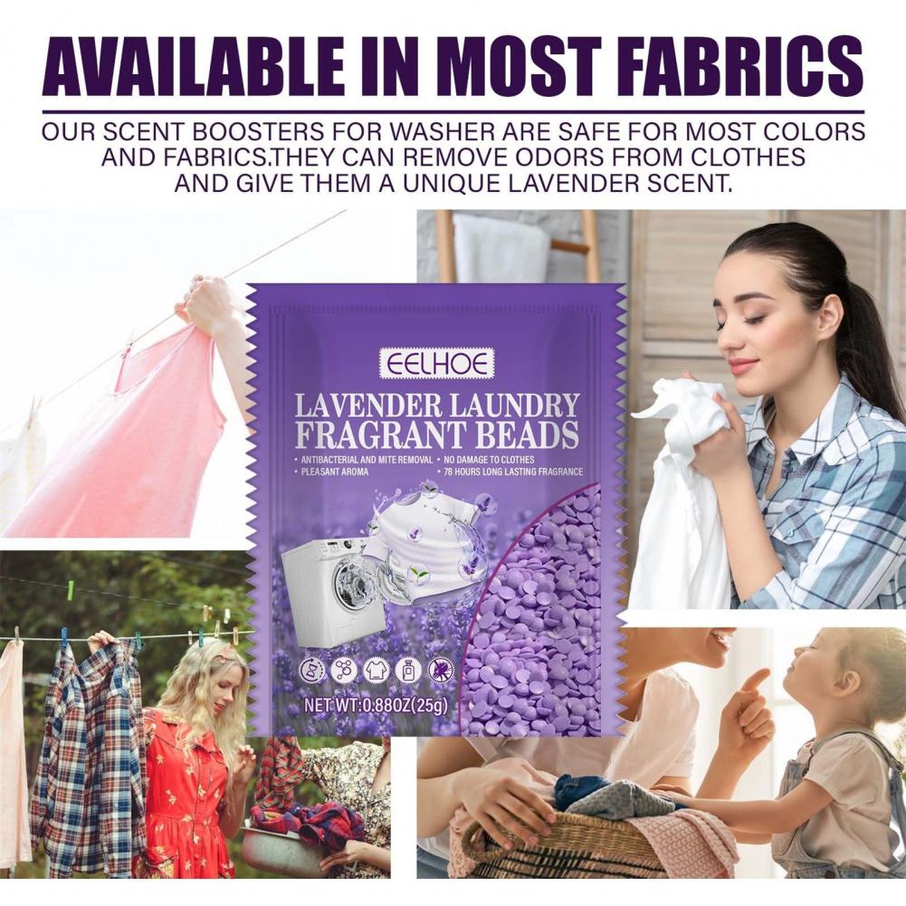 Бусины для стирки обладают ароматом лаванды, который помогает устранить запах одежды и придает одежде уникальный аромат, обеспечивая свежесть, которая длится долгое время.
