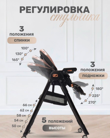Описание: Практичный стульчик для кормления сделает прием пищи приятным занятием как для взрослого, так и ребенка! Стульчик для малыша имеет 5 уровней высоты, позволяет подобрать положение спинки для отдыха, сна, еды в 3 вариантах. Стул на колесиках можно использовать в положении "шезлонг" с первых месяцев. Присутствует регулируемая подставка для ног в 3 положениях. Мягкое сидение из эко-кожи легко поддается чистке. Пятиточечный ремень с плечевыми накладами обеспечит безопасность малышу. Столик с подстаканником регулируется по глубине в 3 положениях, легко снимается. Под сидением есть корзинка для игрушек. Изделие легко передвигается за счет 4 прорезиненных съемных колес с тормозами. Благодаря металлической раме выдерживает нагрузку до 25 кг. Стульчик трансформер подходит для девочек и мальчиков. Детский «растущий» стул можно подарить родителям в честь рождения ребенка, на крестины, по любому поводу. Идеальный подарок новорожденным. Незаменимый аксессуар для детей и помощник родителей. Стульчик для кормления ребенка может использоваться как кроватка, столик и стул. Складной стульчик занимает мало места, легко собирается и складывается.