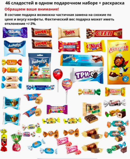 Описание: Сладкий бокс Бери Сладость предлагает самые вкусные подарки для ребенка от лучших производителей. Подходит как сладкий новогодний подарок для ребенка и детей в школу и детский сад, и как новогодний подарочный набор на Новый год 2023. Сладкий подарочный набор можно купить детям как подарок на Новый год. А набор сладостей для них будет как самая вкусная еда и сладкие продукты питания, которые так любят дети. Новогодний набор конфет вызовет море радости на любом празднике: Новый Год, утренник, день рождения! Сладости для детей это лучшие вкусные подарки. Наши яркие подарочные наборы на Новый год 2023 ( в которые входят красочная подарочная коробка и новогодние конфеты ) порадуют всех.