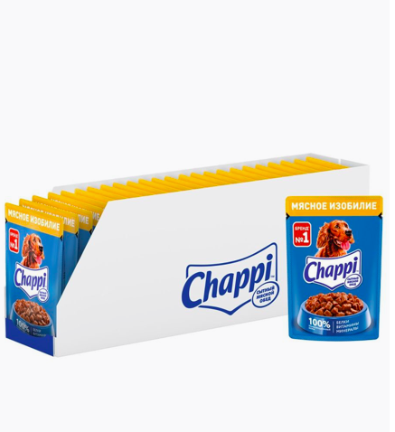 Описание: Chappi Сытный Мясной Обед, влажный корм для взрослых собак всех пород, мясное изобилие (28шт в уп) 85 гр
