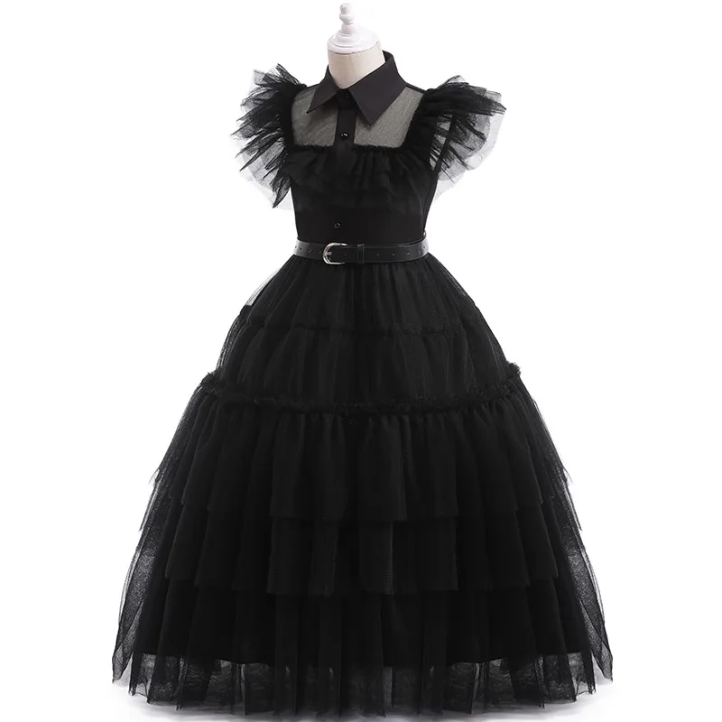 Черное готическое платье с париком для косплея Венсдей, размеры 110-160, комплектация в ассортименте