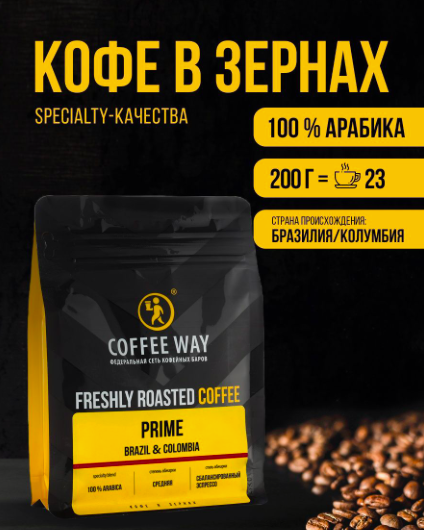 Coffee Way Кофе в зернах для кофемашины арабика PRIME BLEND