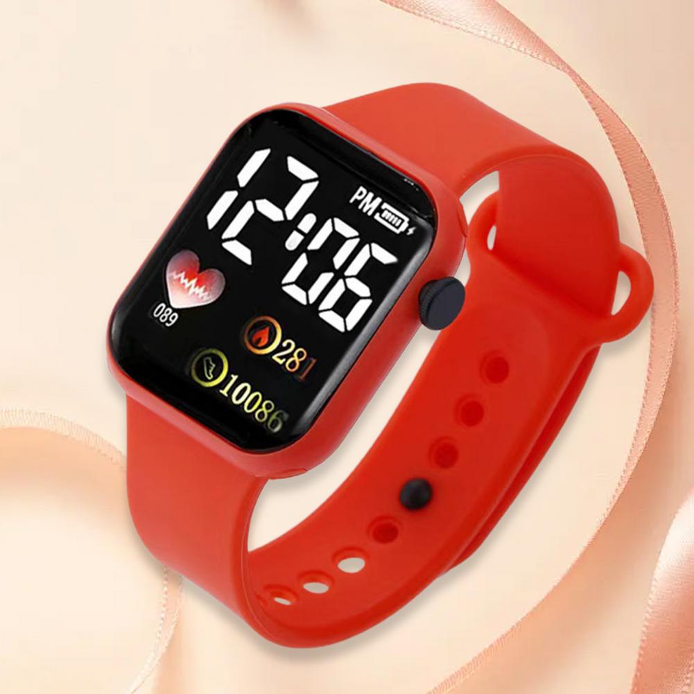 Женские электронные часы с квадратным циферблатом, наручные часы для фитнеса, водонепроницаемые регулируемые детские светодиодные цифровые умные спортивные наручные часы с принтом сердца