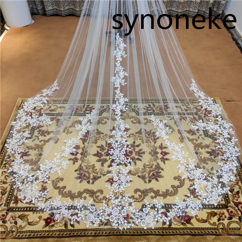 Длинная кружевная свадебная фата, однослойная белая, цвета слоновой кости, свадебная фата с гребнем, 2022