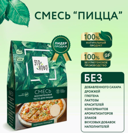 Описание: Безглютеновая пицца отлично подойдет для вкусного и здорового перекуса, завтрака или чаепития. На обороте упаковки напечатана инструкция по приготовлению и расположен специальный QR-код, ведущий к видеоинструкции на сайте компании ! Выгода 15%. Время приготовления: 25 минут вместе с замешиванием теста. Важно: строгое следование инструкции, напечатанной на упаковке, сформировать корж руками или ложкой, слегка смоченными водой. Начинку вы можете добавить какую захотите: будь то классическая пицца «Маргарита» или что-то экзотическое.Также, вы можете найти продукты ЭТОНОВО по запросам:* без глютена, без добавленного сахара, без лактозы, без наполнителей, без злаков, без дрожжей, без консервантов, без красителей, без вкусовых добавок, без ароматизаторов* удобная упаковка* продукт, который подходит для ПП и ЗОЖ, веган - продукт, палео* протокол об отсутствии глютена* 100 % натуральный продукт, 100% безглютеновое производство, контроль качества на всех этапах производстваСостав: крахмал кассавы, мука марантовая, соль гималайская розовая пищевая, лук сушеный молотый, чеснок сушеный молотый.Наша цель – доказать, что здоровое питание может быть вкусным! Закажите смесь от ЭТОНОВО и убедитесь в этом лично!
