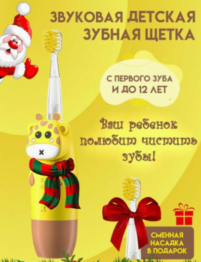 Описание: Лучший подарок на Новый год мальчику и девочке! Научите своего ребенка здоровой привычке чистить зубы. Электрическая зубная щётка работает на основе звуковой технологии, это значит что зубная щетка работает благодаря вибрации, совершая очень быстрые колебательные движения. Благодаря яркому дизайну с мультяшными персонажами, чистка зубов превращается в веселое увлекательное занятие. Маленькая круглая головка обеспечивает безопасный уход! Удобные кнопки включения-выключения. Детская электрическая щетка имеет 2 сменные насадки, корпус щетки - водонепроницаемый, тип питания - 1 элемент типа ААА. Детская электрическая зубная щётка имеет 4 режима работы, в том числе режим без вибрации, но с подсветкой - для самых маленьких 0+ . Щётка имеет встроенный таймер, который срабатывает каждые 30 секунд , как напоминание о том, что нужно сменить область для чистки зубов, также ещё есть таймер по завершению работы через 2 минуты. Зубная электрическая щетка удаляет больше налёта, чем обычная щетка, щетинки совершают амплитудные движения под действием электромагнита, который раскачивает головку. Это создает звуковую волну, которую улавливает слух человека. под действием звуковой волны смесь слюны и зубной пасты начинает двигаться и тщательно промывает все труднодоступные места. Звуковая щётка рекомендована детскими стоматологами для ежедневного использования. Зубная электрическая щётка для детей отлично чистит зубы и не повреждает эмаль, благодаря небольшому размера головки удобно вычищать дальние зубки. Электрическая щётка имеет высокую степень защиты от воды и пыли IPX7, с данной зубной щеткой можно купаться в ванной без каких либо опасений, нужно только убедиться, что отсек с батарейкой закрыт плотно!