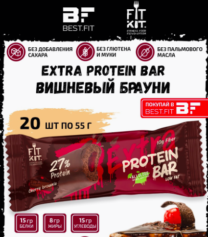 FIT KIT EXTRA Protein BAR, 20 шт х 55 г