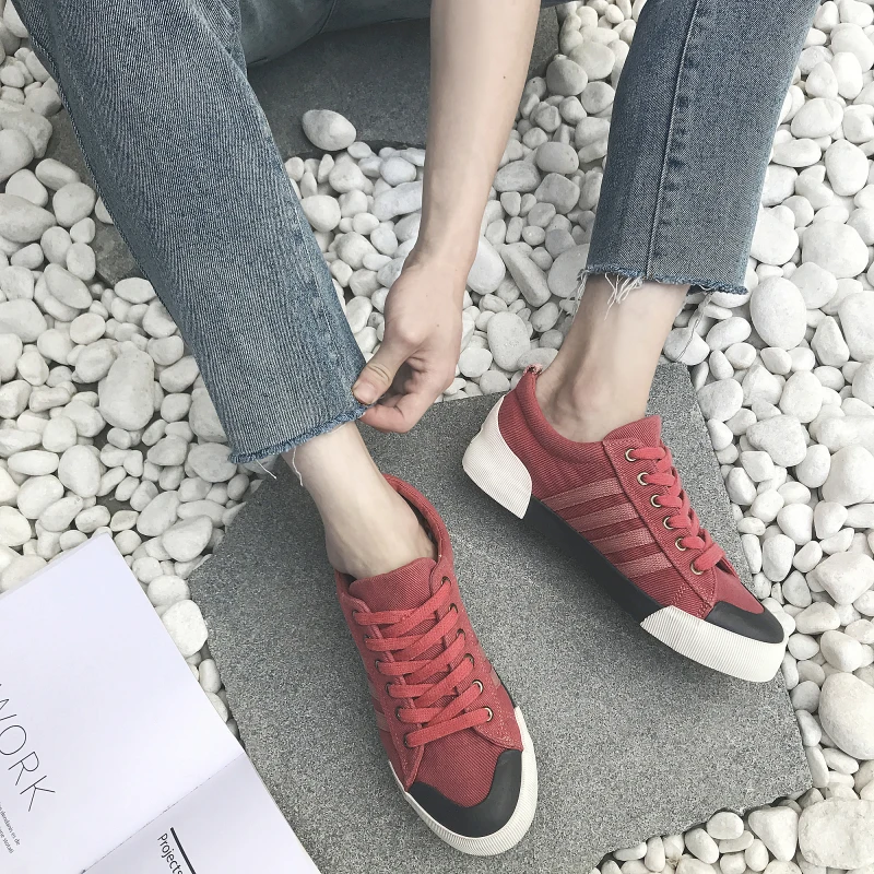 Кроссовки мужские холщовые, мягкая резиновая подошва, на шнуровке, Вулканизированная подошва, повседневные теннисные туфли, красные, весна-осень