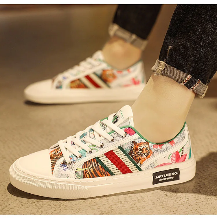 Кроссовки мужские кожаные в европейском стиле, люксовые уличные туфли на плоской подошве, с тигровым принтом, модная обувь для скейтборда, осень