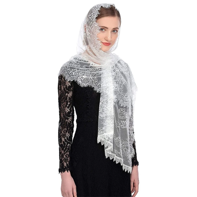 Кружевная Мантилья, вуаль, мягкая и удобная, 2 цвета, черный и белый, в испанском стиле, розовая кружевная вуаль, покрывающая голову, обертывания